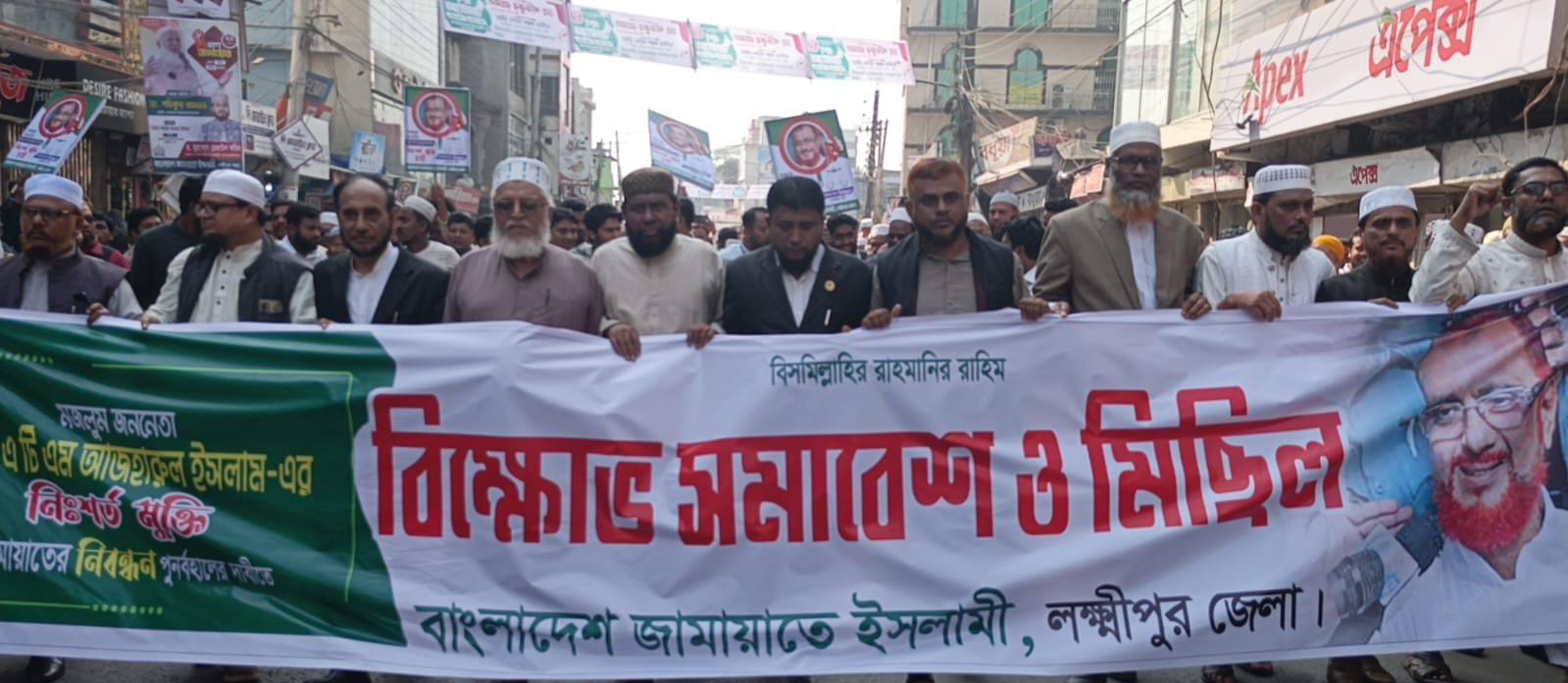 বাংলাদেশ জামায়াতে ইসলামীর সহকারী সেক্রেটারি জেনারেল এটিএম আজহারুল ইসলামের মুক্তি ও জামায়াতের নিবন্ধন পুণর্বহালের দাবিতে লক্ষ্মীপুরে বিক্ষোভ সমাবেশ ও মিছিলে প্রধান অতিথির বক্তব্যে তিনি একথা বলেন।
