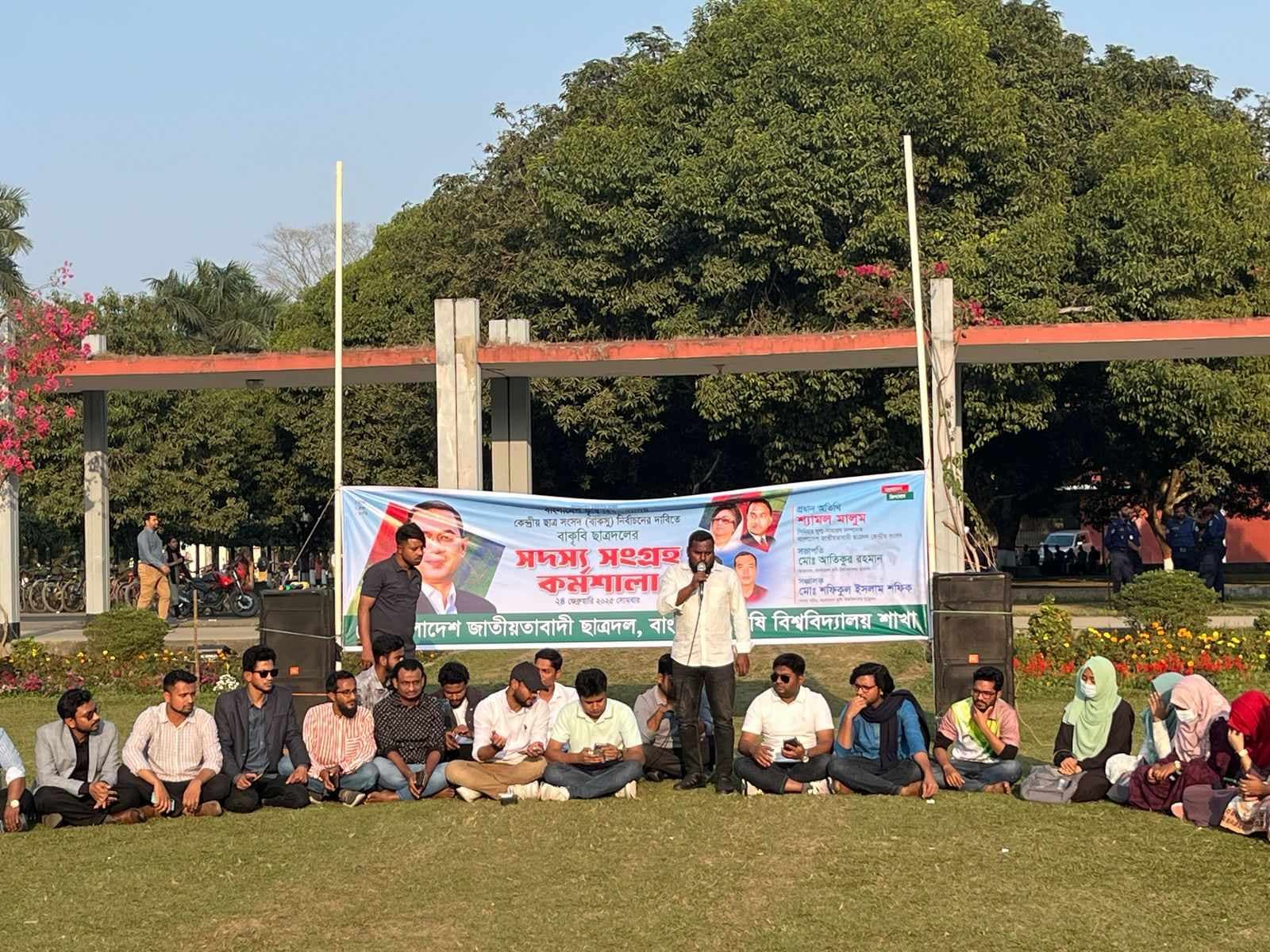 বাংলাদেশ কৃষি বিশ্ববিদ্যালয় (বাকৃবি) কেন্দ্রীয় ছাত্র সংসদ (বাকসু) নির্বাচনের দাবিতে বাকৃবি ছাত্রদলের সদস্য সংগ্রহ কর্মশালা অনুষ্ঠিত হয়েছে। সোমবার (২৪ ফেব্রুয়ারি) বিশ্ববিদ্যালয়ের সমাবর্তন চত্বরে বিকেল ৪টায় সদস্য সংগ্রহ অনুষ্ঠিত হয়।