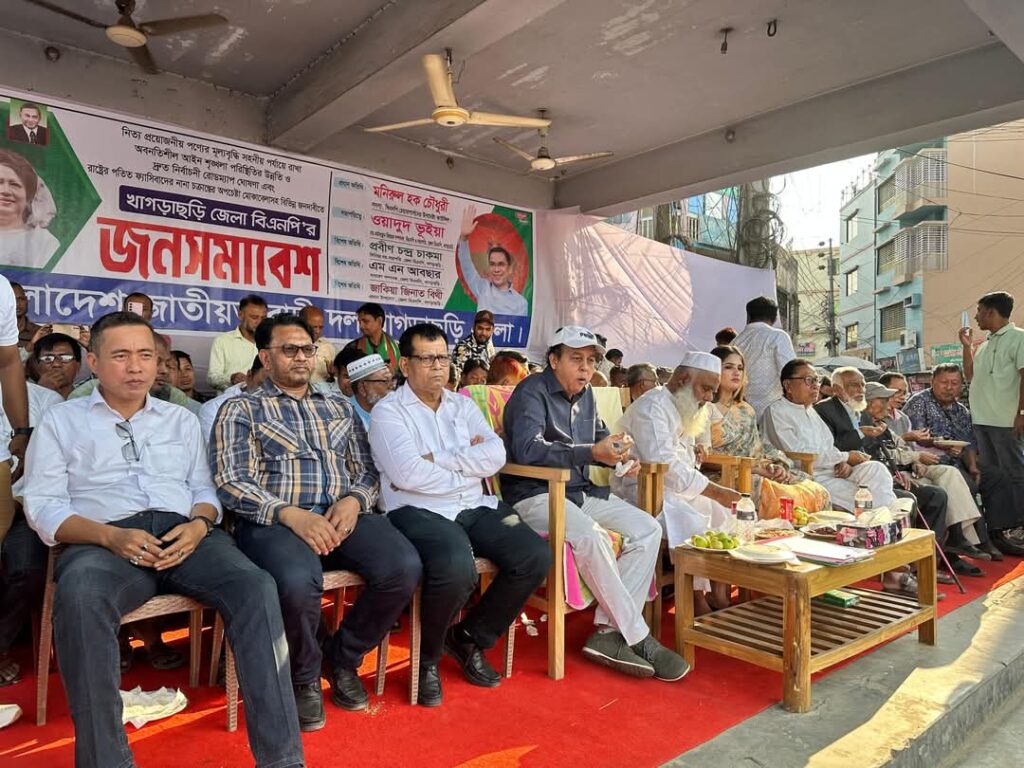 নিত্য প্রয়োজনীয় পণ্যের মূল্যবৃদ্ধি সহনীয় পর্যায়ে রাখা। নির্বাচনী রোডম্যাপ ঘোষণা। পতিত ফ্যাসিবাদের নানা চক্রান্তের অপচেষ্টা মোকাবেলাসহ বিভিন্ন জনদাবীতে জনসমাবেশ করেছে খাগড়াছড়ি জেলা বিএনপি ।