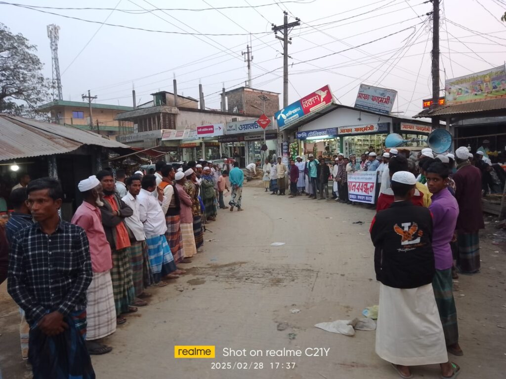 সিলেটের গোয়াইনঘাট উপজেলার ফতেপুর ইউনিয়নের গোসাইনপুর গ্রামের নিরীহ কৃষক মোঃ তেরা মিয়াসহ অন্যান্যদের উপর ইউনিয়ন আওয়ামী যুবলীগের যুগ্ম আহবায়ক মাসুক আহমদ ও তার বাহিনী কর্তৃক হামলা করে মাথা ফাটিয়ে রক্তাক্ত করার প্রতিবাদে ও দ্রুত আইনী ব্যবস্থা গ্রহণের দাবিতে মানববন্ধন অনুষ্ঠিত হয়েছে। ২৮ ফেব্রুয়ারী- ২০২৫, শুক্রবার বিকাল ৫.০০ ঘটিকায় স্থানীয় ফতেপুর বাজারে উক্ত মানববন্ধন অনুষ্ঠিত হয়। বাংলাদেশ খেলাফত মজলিস ফতেপুর ইউনিয়ন শাখার সাধারণ সম্পাদক মাওলানা সালমান হোসাইনের সভাপতিত্বে ও খেলাফত মজলিস নেতা হাসান আহমদ চৌধুরীর সঞ্চালনায় অনুষ্ঠিত মানববন্ধনে প্রধান অতিথি হিসাবে উপস্থিত ছিলেন খেলাফত মজলিস গোয়াইনঘাট উপজেলা শাখার সিনিয়র সহ-সভাপতি মাওলানা উবায়দুল্লাহ জহির।