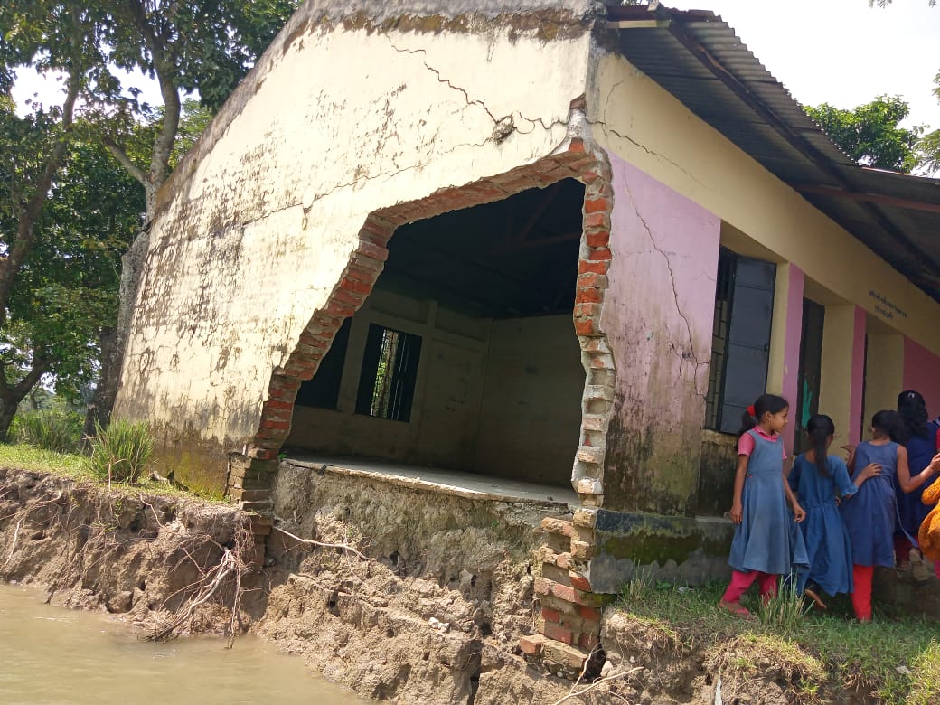 স্কুল এর শিক্ষার্থীরা বলেন স্কুল নদীতে ডুবে গেলে আমরা পড়ব কোথায়?