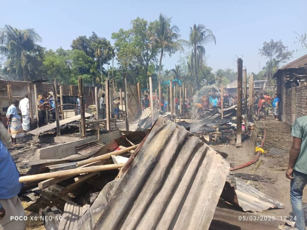 সাঁড়া ইউনিযনের বাসিন্দা আবুল জানান, আগুন লাগার পরপরই স্থানীয় মানুষজন নেভাতে সচেষ্ট হয়। পরে ফায়ার সার্ভিসের সহযোগিতায় আগুন নিয়ন্ত্রণে আনা হয়।প্রাথমিক ভাবে ধারণা করা হচ্ছে বৈদ্যুতিক শর্টসার্কিট থেকে আগুনের সূত্রপাত। তবে পাশে গ্যাসের চুলাও ছিল।