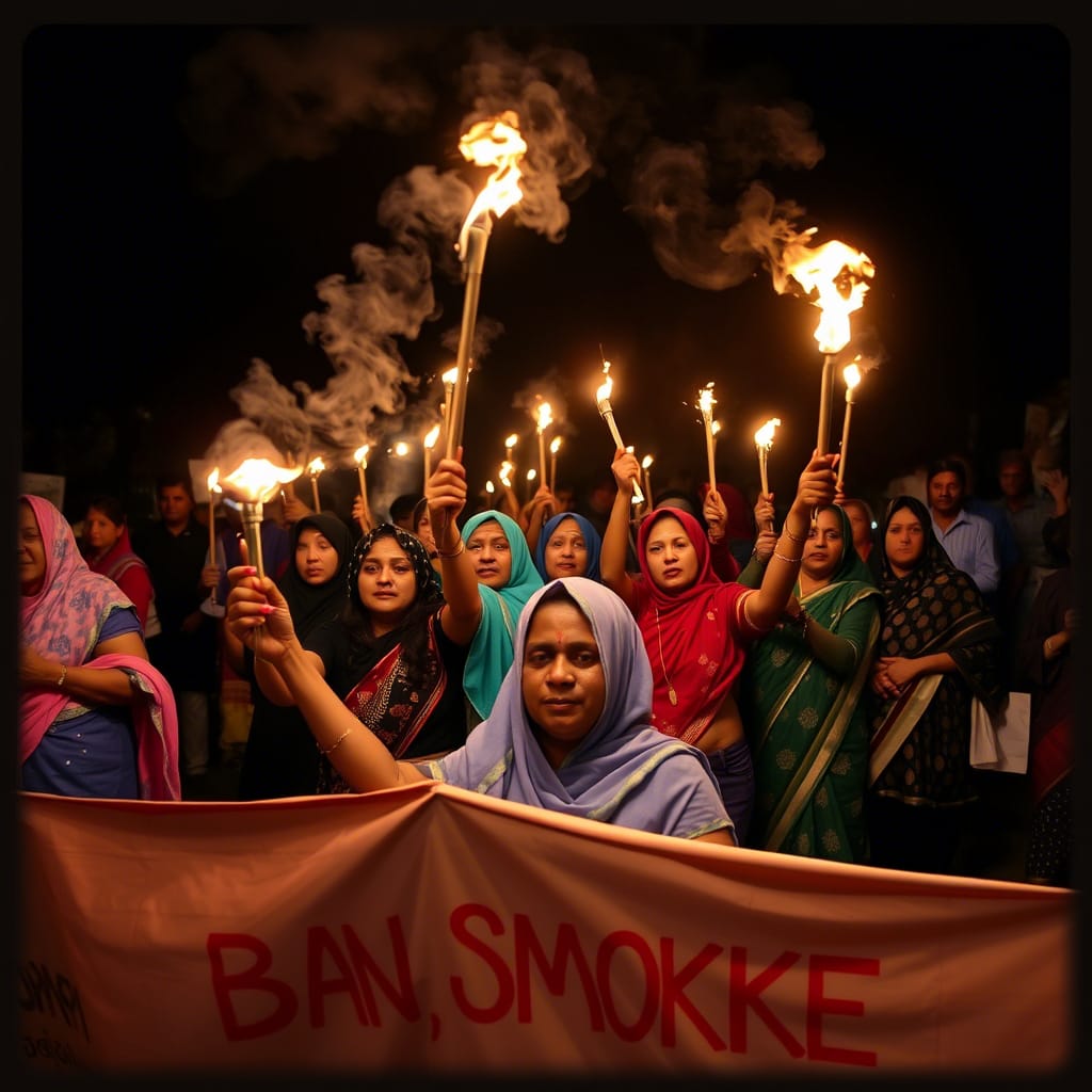 প্রকাশ্যে ধুমপান নিষিদ্ধের দাবিতে মশাল মিছিল করেছেন কয়েক শতজন নারী। বুধবার রাত সাড়ে ১০টার দিকে মোহাম্মদপুর বাসীর ব্যানারে লালমাটিয়ায় এ মিছিল বের করেন তারা।