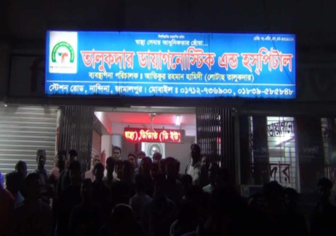 মঙ্গলবার (৪ মার্চ ) রাত ৯ টায় জামালপুর সদরের নান্দিনা স্টেশনে রোডে তালুকদার ডায়াগনস্টিক এন্ড হাসপাতালে এই মৃত্যুর ঘটনা খবরে হাসপাতালে হট্রগোল ও ভাঙচুর চালিয়েছে এলাকাবাসী ও নিহতের স্বজনরা মৃত্যুর পর থেকেই হাসপাতাল থেকে চিকিৎসক, নার্স ও কর্মকর্তারা পালিয়ে যায় অন্যদিকে হাসপাতালের পরিচালক ডা: নাইম তালুকদারকে অবরুদ্ধ করে রাখে বিক্ষুব্ধরা সংবাদ পেয়ে ঘটনাস্থলে গিয়ে জামালপুর সদর থানা পুলিশ পরিস্থিতি নিয়ন্ত্রণে আনে এ সময় বিক্ষুব্ধ জনতা ও নিহতের স্বজনরা তদন্ত কমিটি করে দ্রুত শাস্তির দাবি জানান ।