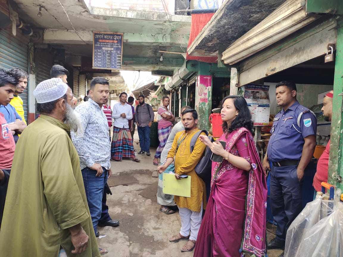 ছবির ক্যাপশন ঃ গাজীপুরের কালীগঞ্জে জাঙ্গালিয়া ইউনিয়নের আওড়াখালী বাজারে উপজেলার নির্বাহী ম্যাজিস্ট্রেট নুরী তাসমিন ঊর্মি ভ্রাম্যমাণ আদালত পরিচালনা করেন।