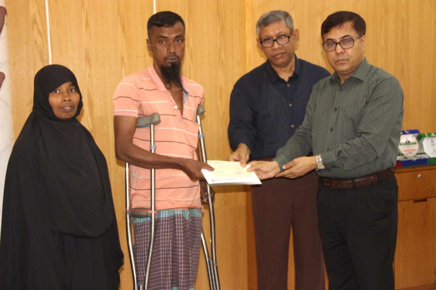 মঙ্গলবার (৬ মার্চ) সকালে উপাচার্যের কার্যালয়ে গিয়ে সহায়তার চেক গ্রহণ করেন মোফাজ্জল ও তার স্ত্রী মোসা. মর্জিনা আক্তার। এ সময় উপস্থিত ছিলেন বিশ্ববিদ্যালয়ের ট্রেজারার প্রফেসর ড. জয়নুল আবেদীন সিদ্দিকী।