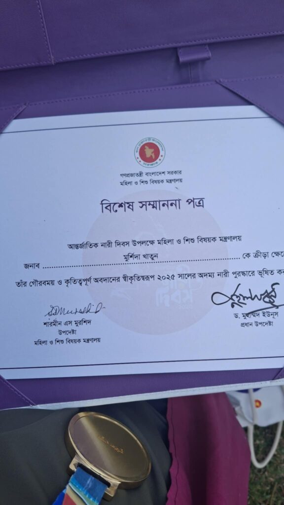 আন্তর্জাতিক নারী দিবস উপলক্ষে কুষ্টিয়ার খোকসার গর্ব, সংগ্রামী ও অনুকরণীয় নারী মুর্শিদা খাতুন (হ্যাপি) পেলেন অদম্য নারী সম্মাননা ২০২৫ রাজধানীর ওসমানী স্মৃতি মিলনায়তনে আয়োজিত এক বর্ণাঢ্য অনুষ্ঠানে জাতীয় উপদেষ্টা প্রফেসর মুহাম্মদ ইউনূস তার হাতে এ সম্মাননা তুলে দেন।