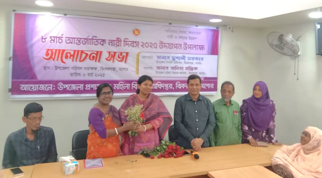 “অধিকার, সমতা, ক্ষমতায়ন নারী ও কন্যার উন্নয়ন” এই স্লোগান কে সামনে রেখে (৮ মার্চ) আন্তর্জাতিক নারী দিবস উপলক্ষ্যে শনিবার সকাল ১০ টায় র্যালি শেষে ঝিকরগাছা উপজেলা পরিষদ সভা কক্ষে আলোচনা সভা অনুষ্ঠিত হয়েছে। উপজেলা মহিলা বিষয়ক কর্মকর্তা অনিতা মল্লিকের,সভাপতিত্বে প্রধান অতিথি হিসেবে উপস্থিত ছিলেন উপজেলা নির্বাহী কর্মকর্তা ভুপালী সরকার।