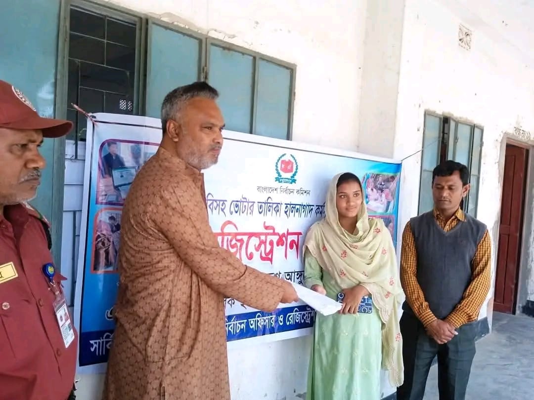 উপজেলা নির্বাচন অফিসার ও রেজিস্ট্রেশন অফিসারের সার্বিক তত্ত্বাবধানে বাদ পড়া ভোটার ও নতুন ভোটারদের ছবি, স্বাক্ষর, আইরিশ ও দশ আঙ্গুলের সাপ গ্রহণ করা হচ্ছে ।