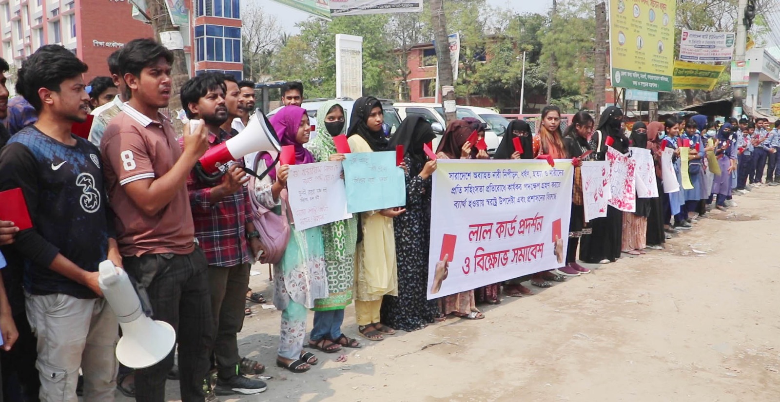 সারা দেশে নারী নিপীড়ন, ধর্ষণ, হত্যা এবং নারীদের প্রতি সহিংসতা প্রতিরোধে কার্যকর পদক্ষেপ গ্রহণ করতে ব্যর্থ হওয়ায় নওগাঁয় স্বরাষ্ট্র উপদেষ্টা ও প্রশাসনকে লাল কার্ড প্রদর্শন করে বিক্ষোভ সমাবেশ করেছে সাধারন শিক্ষার্থীরা।