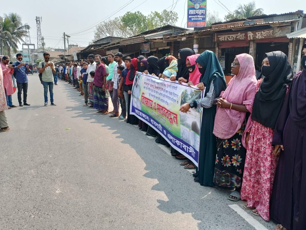 মঙ্গলবার (১১ মার্চ) সকালে বালিয়াকান্দি উপজেলার নারুয়া ইউনিয়নের নারুয়া বাজারে এ মানববন্ধন কর্মসূচি পালন করে বাজারের ব্যবসায়ী ও এলাকাবাসী।