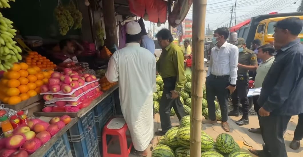 এই রমজান উপলক্ষে নিত্যপ্রয়োজনীয় দ্রব্যসামগ্রীর দাম সহনীয় পর্যায়ে রাখতে ভেড়ামারা পৌরসভার মেইনরোডস্থ বিভিন্ন ফলের দোকান ও রেলবাজারের বিভিন্ন দোকানে মনিটরিং করা হয়েছে। এসময় ৭টি মামলায় ২৫ হাজার টাকা জরিমানা করা হয়েছে। মঙ্গলবার (১১ মার্চ) ভেড়ামারা উপজেলা নির্বাহী কর্মকর্তা রফিকুল ইসলাম ও সহকারী কমিশনার (ভূমি) মোঃ আনোয়ার হোসাইন ভ্রাম্যমাণ আদালতের মাধ্যমে মোঃ ফয়সাল হক, পিতা-বাবু আলী, সাং-ফারাকপুর, দোকান কৃষি বিপনন কে ২,০০০/- টাকা, মোঃ জাহিদুল, পিতা-রেজাউল, সাং-জয়রামপুর, দৌলতপুর কে ৫,০০০/- টাকা, মোঃ সাইদুল ইসলাম, পিতা-মৃত নেতালী, সাং-সাতবাড়ীয়া, ভেড়ামারা, কুষ্টিয়া কে ৩,০০০/- মোঃ শ্যামল, পিং-মানিক উদ্দিন কে ১০,০০০/- টাকা, মোঃ ইমদাদুল হক বিশ্বাস, পিতা-মৃত ময়েনউদ্দিন বিশ্বাস কে ২,০০০/- টাকা, মোঃ সোহেল রানা, পিতা: আঃ মান্নান কে ২,০০০/- হাজার টাকা, মোঃ জাকির হোসেন, পিতা-ইয়জউদ্দিন, কে ১,০০০/- হাজার টাকা জরিমানা করেন। এ সময় স্ব-স্ব দোকান বা প্রতিষ্ঠানের মালিকগণ উপস্থিত ছিলেন, তারা তাদের দোষ স্বীকার করেন এবং বলেন ভবিষ্যতে তারা তাদের ভুল গুলো ঠিক করে নেবেন।