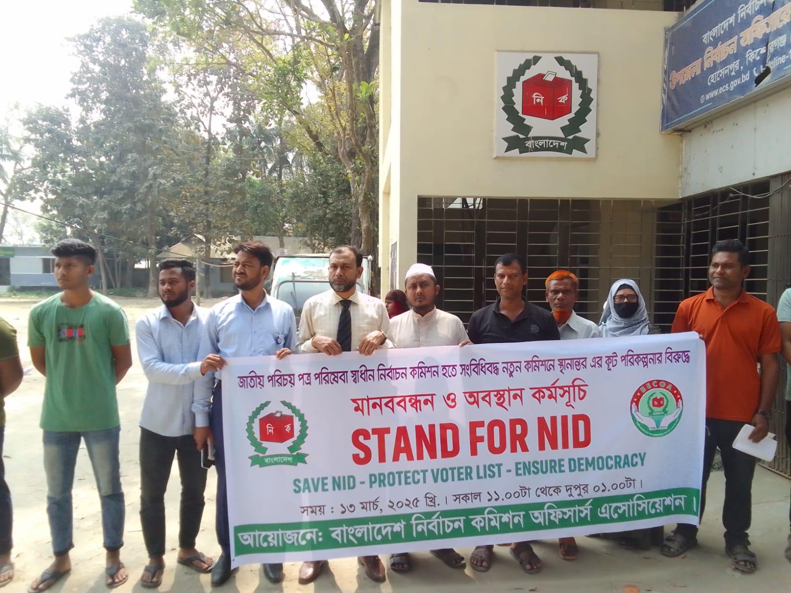 কিশোরগঞ্জের হোসেনপুরে বাংলাদেশ নির্বাচন কমিশন এসোসিয়েশনের উদ্যোগে জাতীয় পরিচয়পত্র পরিষেবা স্বাধীন নির্বাচন কমিশন হতে সংবিধিবদ্ধ নতুন কমিশনে স্থানান্তরের কূট পরিকল্পনার বিরুদ্ধে মানববন্ধন ও অবস্থান কর্মসূচি পালিত হয়েছে।