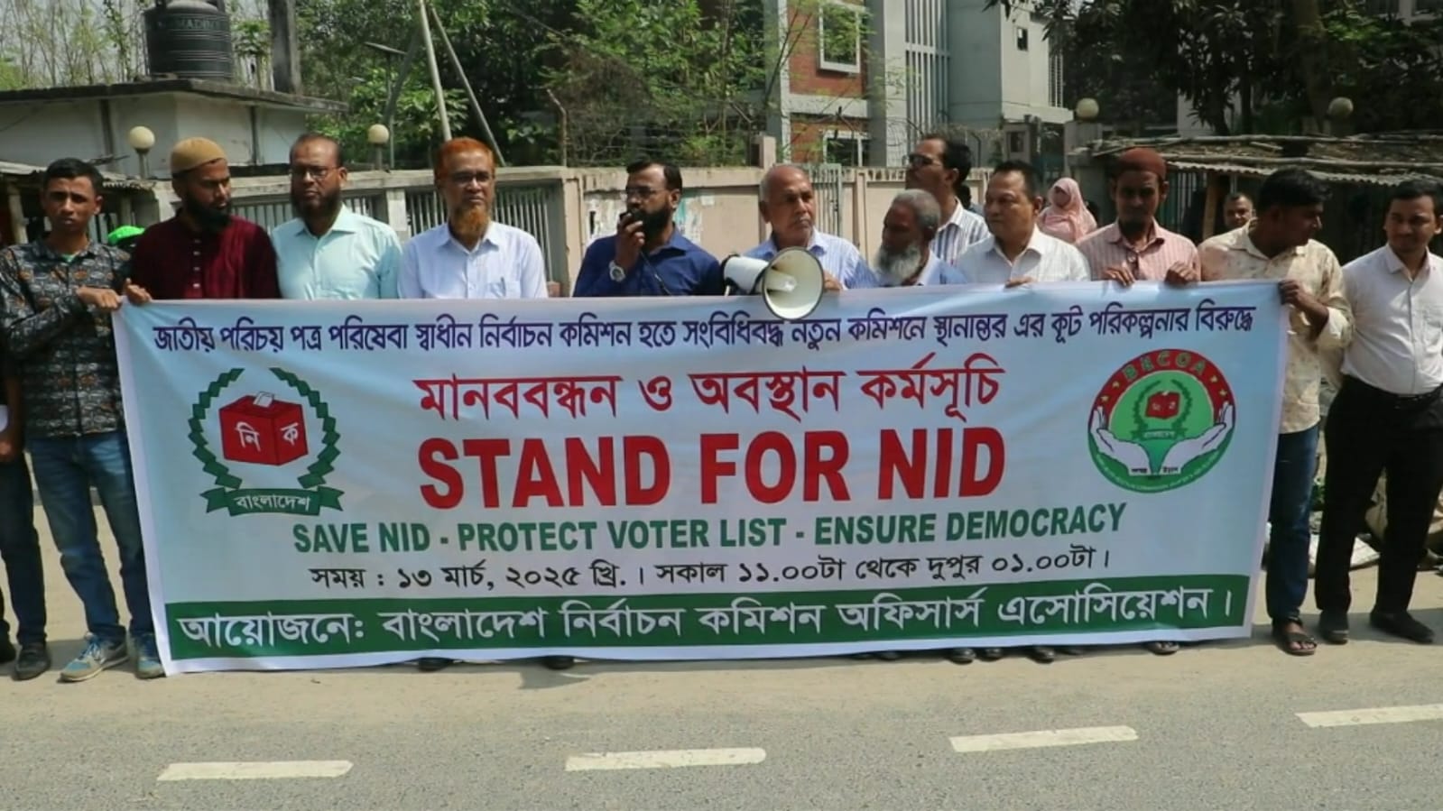 নাগরিকের জাতীয় পরিচয়পত্র পরিষেবা নির্বাচন কমিশন থেকে অন্যত্র স্থানান্তরের প্রতিবাদে নওগাঁয় মানববন্ধন ও অবস্থান কর্মসূচি পালিত হচ্ছে। আজ বেলা ১১ টা থকে বাংলাদেশ নির্বাচন কমিশন অফিসার্স এসোসিয়েশনের ব্যানারে জেলা নির্বাচন অফিসের সামনে এই মানববন্ধন ও অবস্থান কর্মসূচি পালিত হয়।