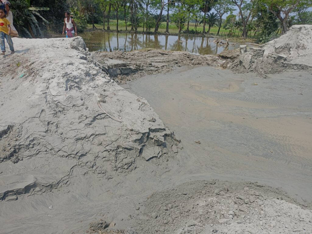 ৩ কিঃ রাস্তা এবং একটি সুইস গেট মোট বাজেট ৫৪কোটি টাকা, কোম্পানি আরএফএল কাজ পায় সরকারের পানি উন্নয়ন বোর্ডের কাছ থেকে তারই প্রেক্ষিতে চলমান কাজ করতে গিয়ে। জাহাজ দিয়ে বালি এনে নদী থেকে উত্তোলন করার সময় নোনা পানির ব্যবহার করে সেই নোনা পানি সরানোর জন্য বাঁধ কেটে দেয় ঠিকাদারি প্রতিষ্ঠান, এতে আসপাশের থাকা মাছের পুকুরে প্রবেশ করে প্রায় ১০ মন দেশি ও কাপ জাতীয় মাছ মারা যায় যার