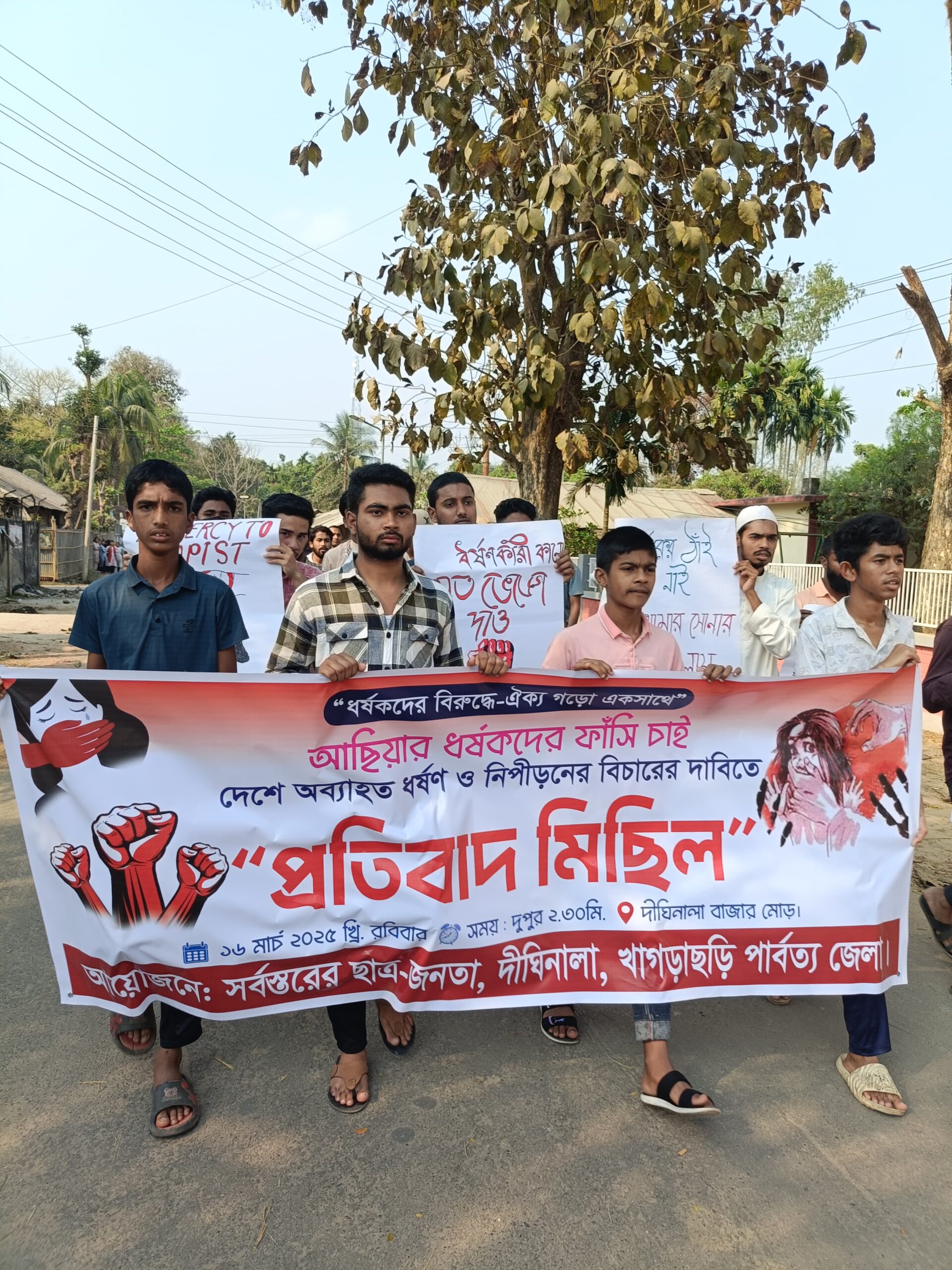 খাগড়াছড়ি দীঘিনালাতে আছিয়া ধর্ষকেদের ফাঁসির দাবিতে প্রতিবাদ মিছিল করেছে দীঘিনালার সর্বস্তরের ছাত্র জনতা ।