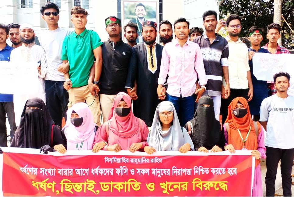শিক্ষার্থী সুমাইয়া মুস্তাকিনের সভাপতিত্বে এতে বক্তব্য রাখেন, সাব্বির খান, সিহাব, সাহেদ, জাহাঙ্গীর, তোহা, মহান, ফাহিম, সিহাব, মলি, হৃদয়, তারাজুল, মাসুদ, জেরিন, নুরনবীসহ উপজেলার বিভিন্ন শিক্ষা প্রতিষ্ঠানের শিক্ষার্থীবৃন্দ। সমাবেশে বক্তারা জানান ধর্ষণের সংখ্যা বাড়ার আগে ধর্ষকের ফাঁসি ও সকল মানুষের নিরাপত্তা নিশ্চিত করতে হবে।