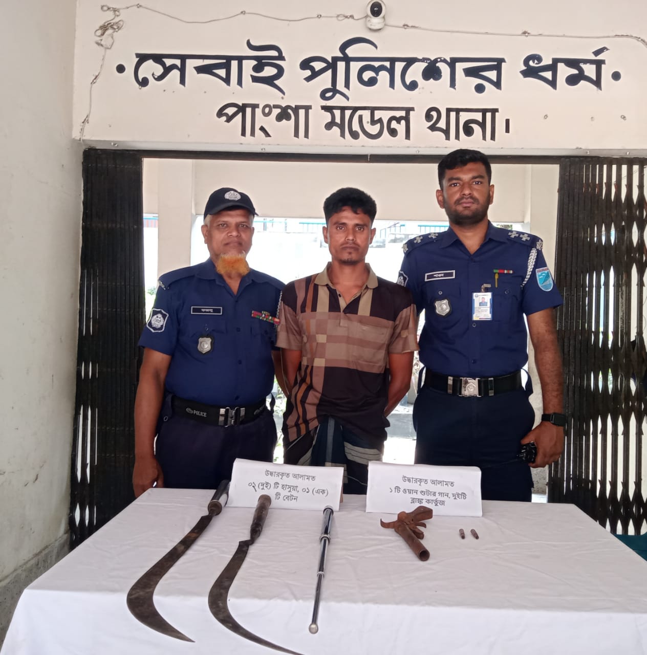 পাংশা মডেল থানার অফিসার ইনচার্জ (ওসি) মোহাম্মদ সালাউদ্দিন বলেন, পাংশা থানার কসবামাজাইল ইউনিয়নের লক্ষীপুর গ্রামের ধৃত আসামী সোহাগ হোসেন ওরফে শুকলাল বসতবাড়ীতে অভিযান পরিচালনা করা হয়। অভিযানে ঘরের পশ্চিম পাশের খড়ের পালার ভিতর থেকে পাংশা থানার এসআই মোঃ শিহাবুদ্দীন সঙ্গীয় অফিসার ফোর্সসহ ও যৌথ বাহিনীর সহায়তায় গ্রেপ্তার করে। তার দখল থেকে একটি ওয়ান শুটার গান, দুইটি ব্ল্যাঙ্ক কার্তুজ, দুইটি হাসুয়া, একটি স্ট্রীলের তৈরী ব্যাটন আসামীর দেখানোমতে জব্দ করা হয়। ধৃত আসামীর বিরদ্ধে অস্ত্র আইনে মামলা দায়ের করা হয়েছে। তাকে দুপুরে রাজবাড়ী আদালতে সোপর্দ করা হয়েছে।