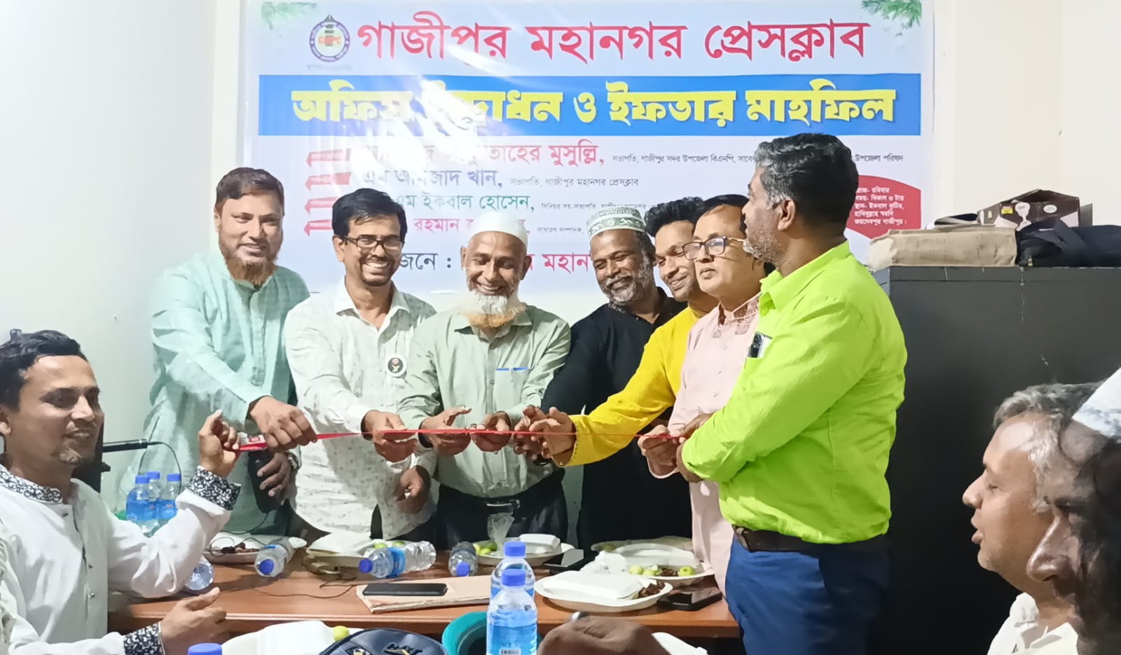 গাজীপুর মহানগরে জয়দেবপুর ইকবাল কুটির হাবিবুল্লাহ স্মরণি গাজীপুর মহানগর প্রেসক্লাবের নতুন অফিস উদ্বোধন ও ইফতার মাহফিল অনুষ্ঠিত হয়।