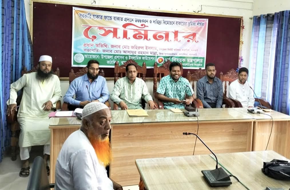 কাঠালিয়ায় যাকাত প্রদানে উদ্বুদ্ধকরণ সেমিনার অনুষ্ঠিত হয়েছে। আজ ১৮ মার্চ মঙ্গলবার সকাল ১০ টায় উপজেলা নির্বাহী অফিসারের সভাকক্ষে ইসলামিক ফাউন্ডেশন এর আয়োজন করেন।