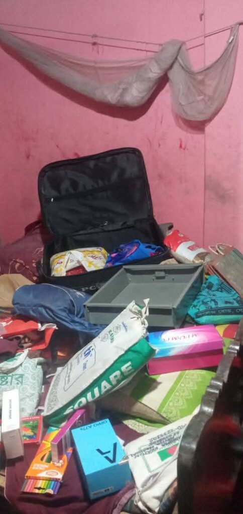 আজ ১৯ মার্চ ২০২৫ সকলে বাড়িতে গিয়ে দেখে তাদের ঘরের সবকিছু নিয়ে এলামেলো দেখতে পান । মাস্টার সাহেবের ছেলে জানান, ডাকাতের দল অনুমানিক দশ লক্ষ টাকার মালামাল সহ এবং ৫ ভরি গয়না সহ ডাকাত দল লুট করে নিয়ে যায়।
