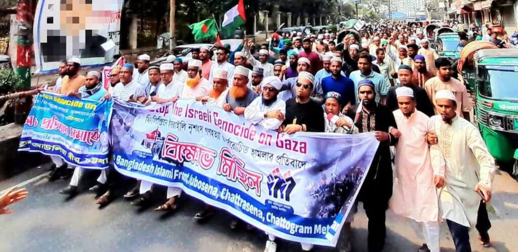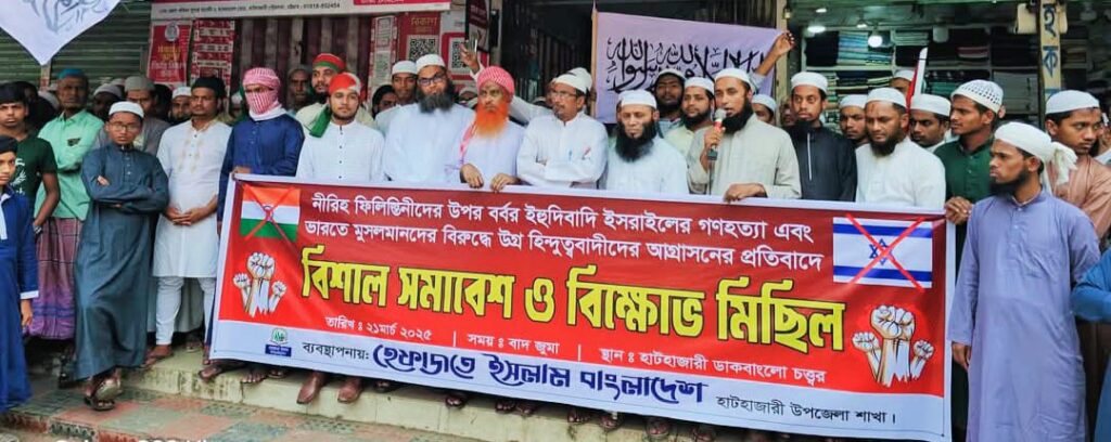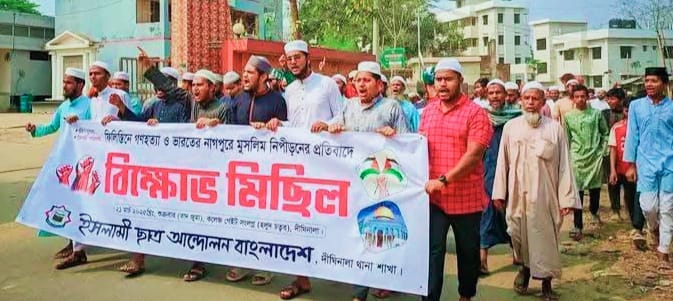 ফিলিস্তিনে ইসরায়েলি হামলা এবং ভারতে উগ্র হিন্দুত্ববাদীদের মুসলমানদের ওপর আগ্রাসনের প্রতিবাদে চট্টগ্রামের বিভিন্ন স্থানে বিক্ষোভ মিছিল ও প্রতিবাদ সমাবেশ অনুষ্ঠিত হয়েছে।
