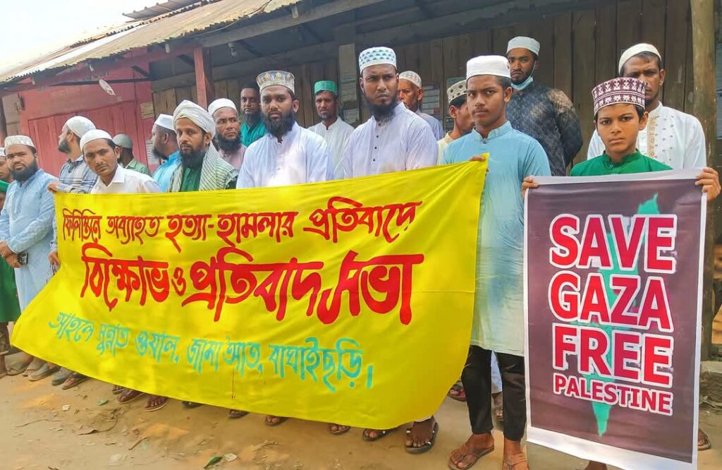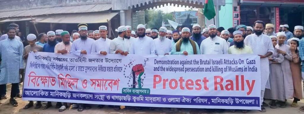 ফিলিস্তিনে ইসরায়েলি হামলার প্রতিবাদে মানিকছড়িতে বিক্ষোভ মিছিল পরবর্তী সমাবেশ অনুষ্ঠিত হয়।