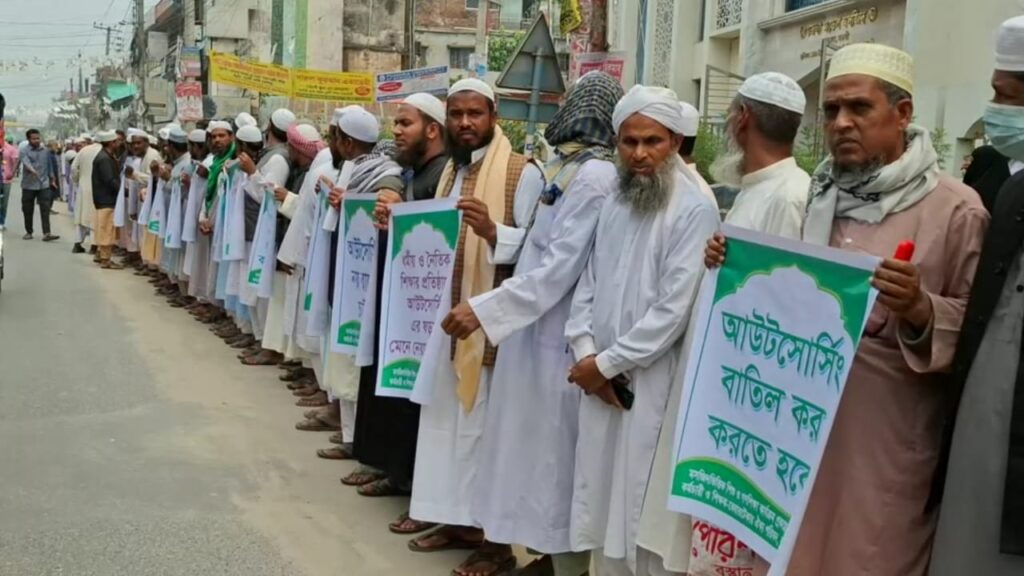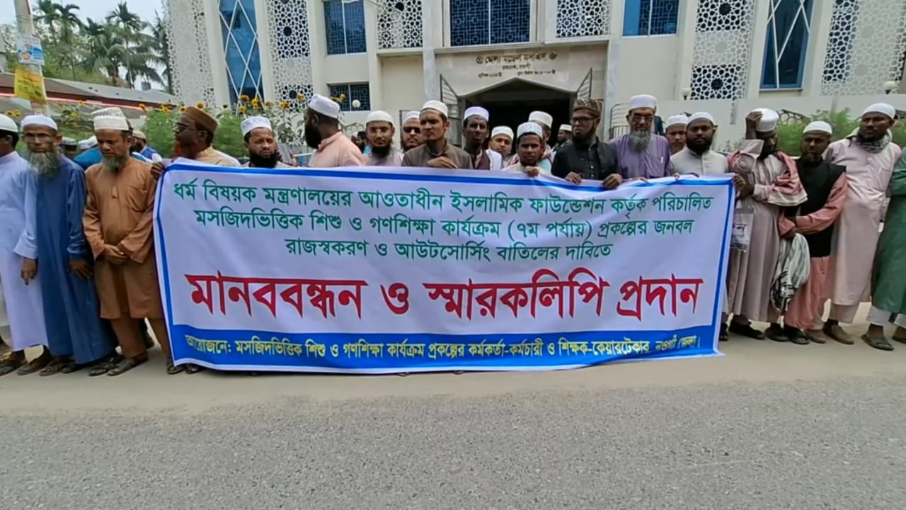 ইসলামিক ফাউন্ডেশন কর্তৃক বাস্তবায়নাধীন মসজিদভিত্তিক শিশু ও গণশিক্ষা কার্যক্রম (৭ম পর্যায়) প্রকল্পের জনবলকে রাজস্বকরণ ও আউটসোর্সিং বাতিলের দাবিতে মানববন্ধন অনুষ্ঠিত হয়েছে। আজ সকালে শহরের মুক্তির মোড়ে মডেল মসজিদের সামনে প্রকল্পটির কর্মকর্তা, কর্মচারি ও কেয়ারটেকারের ব্যানারে ঘন্টাব্যাপী এই কর্মসূচি পালিত হয়।