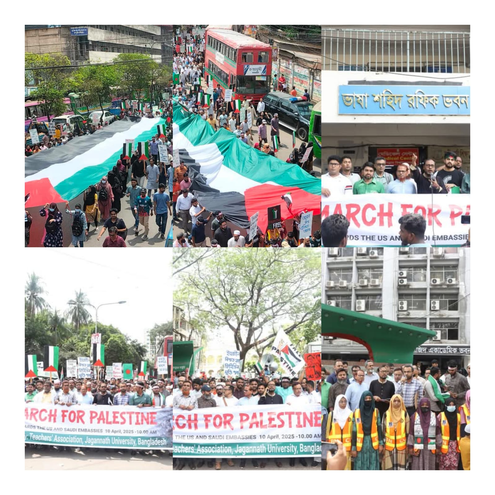 সমাবেশে বিশ্ববিদ্যালয় শিক্ষক সমিতির সাধারণ সম্পাদক অধ্যাপক ড. রইছ উদ্দীন বলেন, “ইসরাইলি গণহত্যার মদদদাতা এই যুক্তরাষ্ট্র। এই হত্যাযজ্ঞ বন্ধে আমরা মার্কিন দূতাবাসে স্মারকলিপি দিবো। একইসাথে, সৌদি আরবের নিস্ক্রিয় ভূমিকার কারণে তাদের দূতাবাস এবং বাংলাদেশের ৯০ ভাগ মুসলমানের দেশের পররাষ্ট্র মন্ত্রণালয়েও স্মারকলিপি প্রদান করা হবে।”