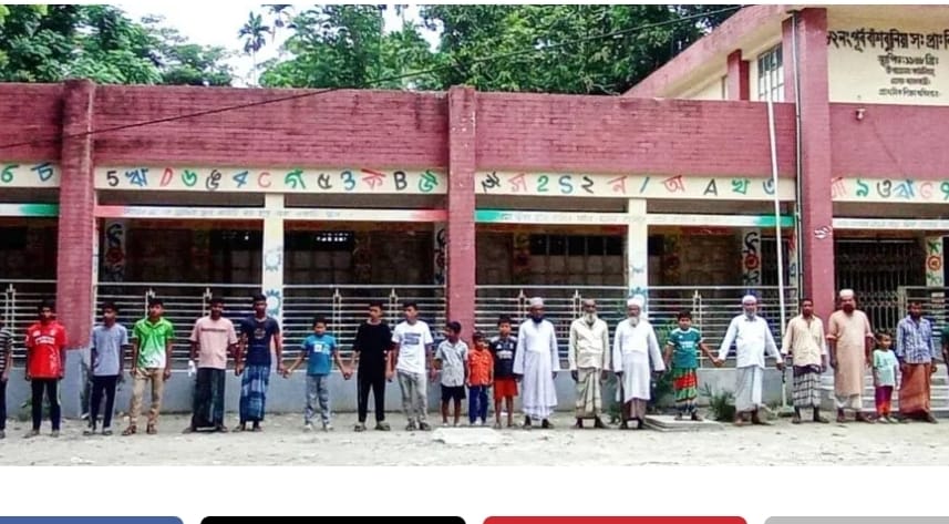 আজ ২৩ মে শুক্রবার সকালে উপজেলার আমুয়া ইউনিয়নের ৮২ নম্বর পূর্ব বাঁশবুনিয়া সরকারি প্রাথমিক বিদ্যালয়ের সামনের মাঠে এ মানববন্ধন অনুষ্ঠিত হয়।