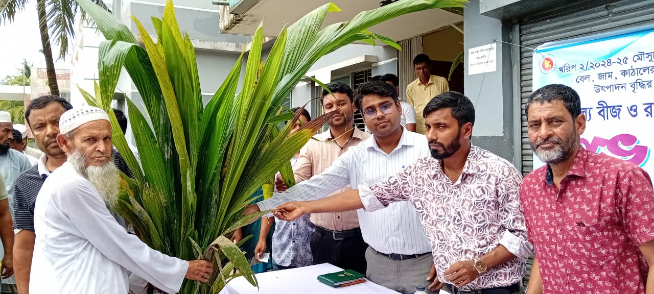 অনুষ্ঠানে প্রতিজন প্রান্তিক কৃষককে ৫ টি নারকেল চারা, ৫ কেজি আমন ধানের বীজ, ১০ কেজি ডিএপি ও ১০ কেজি এমওপি সার বিতরণ করা হয়।