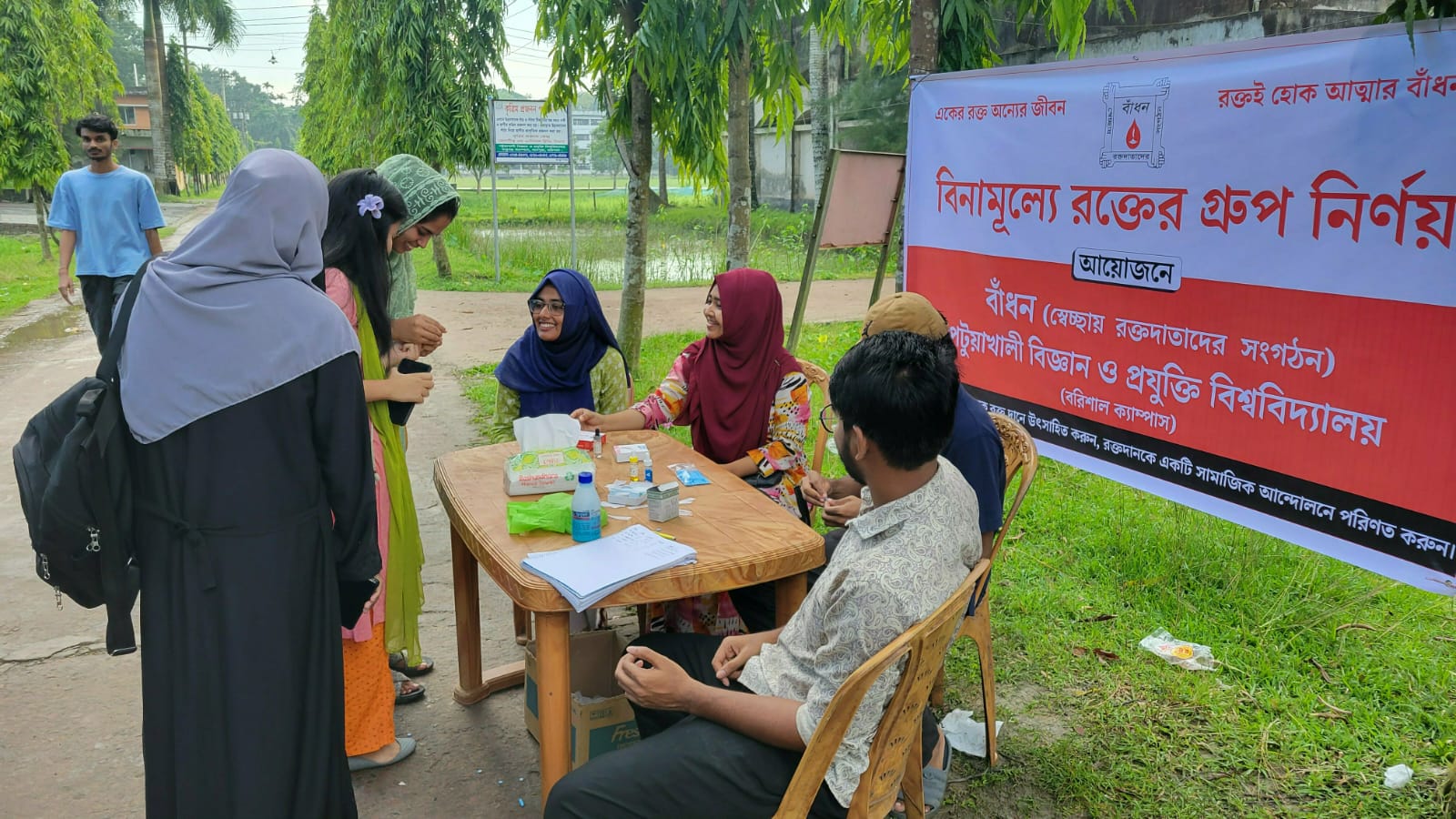 পটুয়াখালী বিজ্ঞান ও প্রযুক্তি বিশ্ববিদ্যালয়ের (পবিপ্রবি) বরিশাল ক্যাম্পাসে স্বেচ্ছায় রক্তদাতাদের সংগঠন বাঁধনের আয়োজনে বৃহস্পতিবার, ১৭ সেপ্টেম্বর ২০২৫ তারিখে বিনামূল্যে রক্তের গ্রুপ নির্ণয় কর্মসূচি অনুষ্ঠিত হয়।