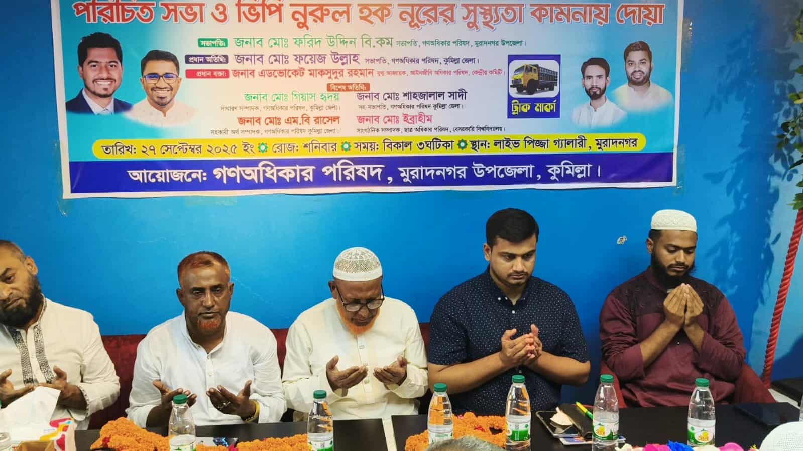 গণ-অধিকার পরিষদ মুরাদনগর উপজেলা শাখার নব-নির্বাচিত কমিটির পরিচিতি সভা ও দলটির সভাপতি ভিপি নুরুল হক নুরের সুস্থতা কামনায় দোয়া মাহফিল অনুষ্ঠিত হয়েছে।