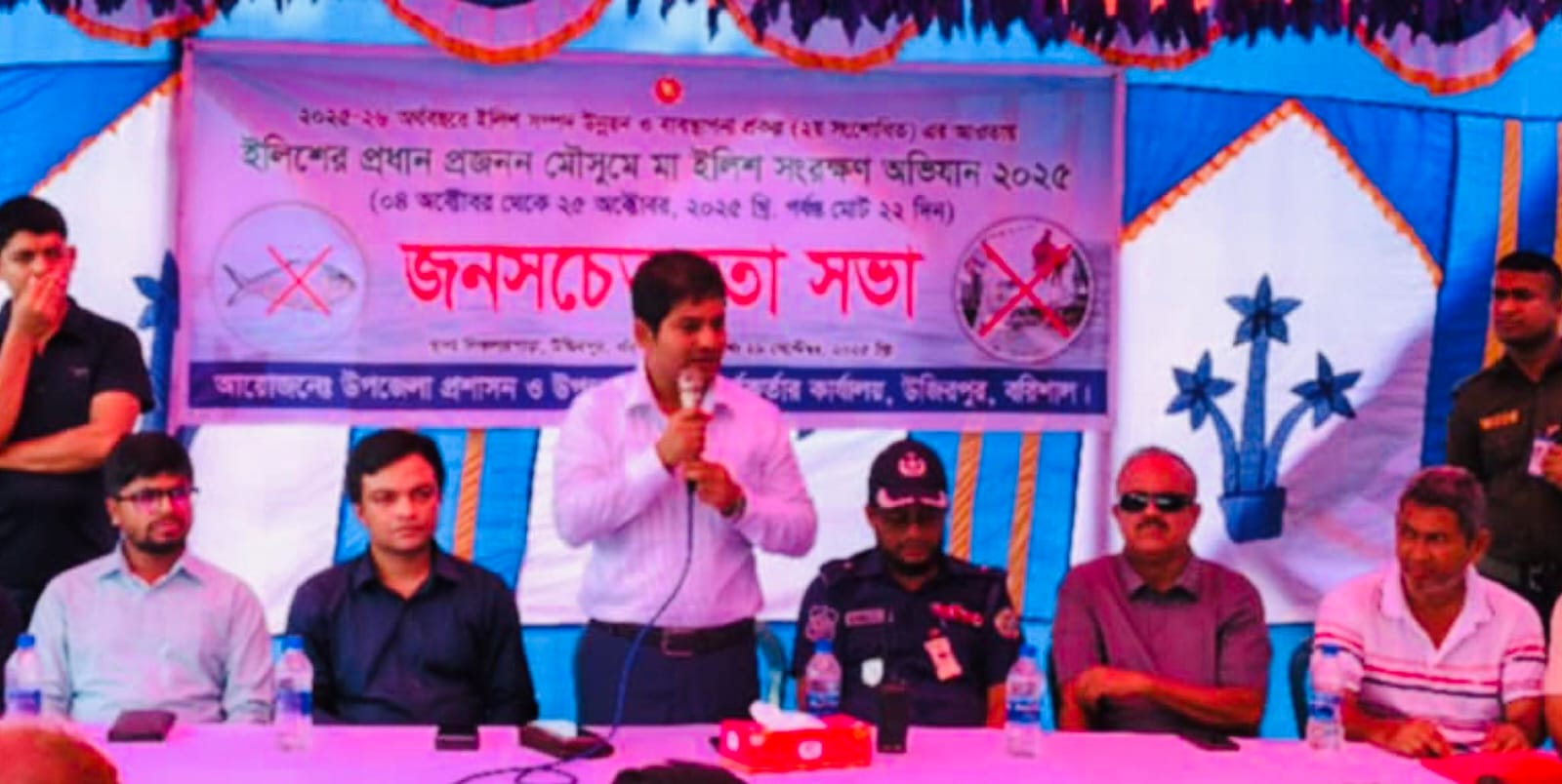 বরিশালের উজিরপুরে উপজেলা প্রশাসন ও মৎস্য কর্মকর্তার কার্যালয়ের আয়োজনে ইলিশের প্রধান প্রজনন মৌসুমে মা ইলিশ সংরক্ষণ অভিযান ২০২৫ উপলক্ষে জন সচেতনতা মূলক সভা অনুষ্ঠিত হয়েছে।