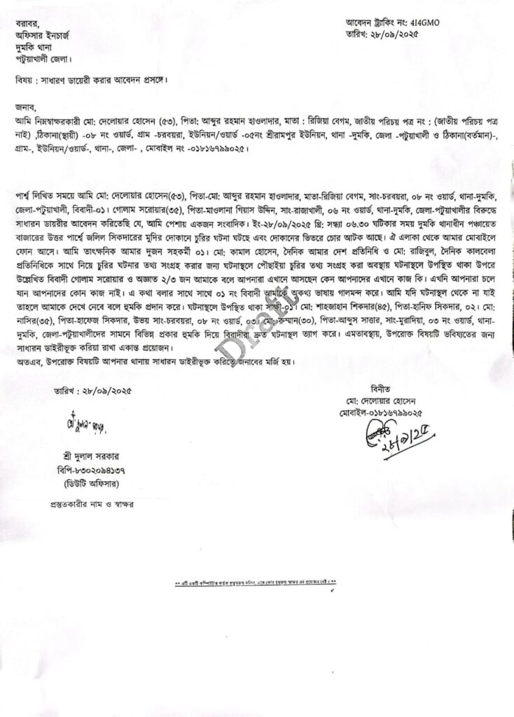এ ঘটনায় প্রেসক্লাব দুমকির সভাপতি সাংবাদিক মো. দেলোয়ার হোসেন দুমকি থানায় একটি সাধারণ ডায়েরি (জিডি) করেছেন।ভুক্তভোগী সাংবাদিকের আবেদনে জানা যায়, রোববার (২৮ সেপ্টেম্বর) সন্ধ্যা ৭টার দিকে উপজেলার চরবয়েড়া এলাকায় জলিল সিকদারের মুদি দোকানে চুরির ঘটনা ঘটে।