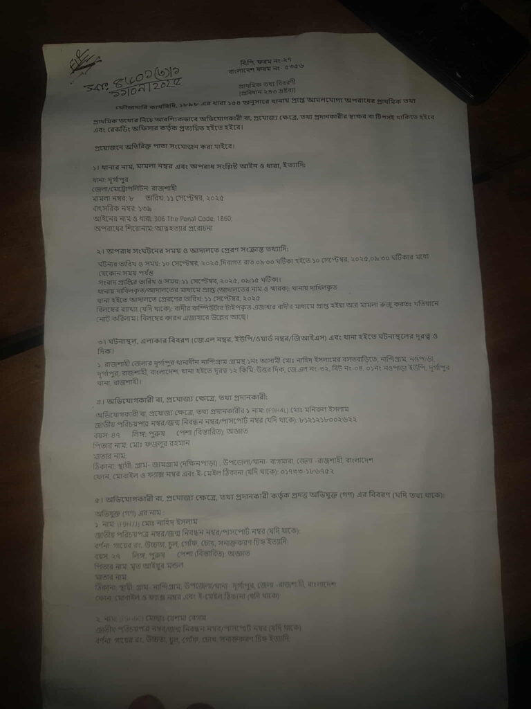 রাজশাহীর বাগমারা উপজেলার তাহেরপুর পৌরসভার জামগ্রাম এলাকার মনিয়া আক্তার বর্ষা খাতুন প্রেম করে বিয়ে করেন, একই জেলার পার্শ্ববর্তী দুর্গাপুর উপজেলার নান্দদি গ্রাম এলাকার মৃত, আয়ুব মন্ডলের ছেলে নাহিদ হোসেনকে। দুই পরিবারের অমতে বিয়ে করার ফলে মানতে পারনি নাহিদের পরিবার। যার ফলে ৩ বছরের সন্তান রেখে ওপারে চলে যেতে হয়েছে বর্ষাকে।