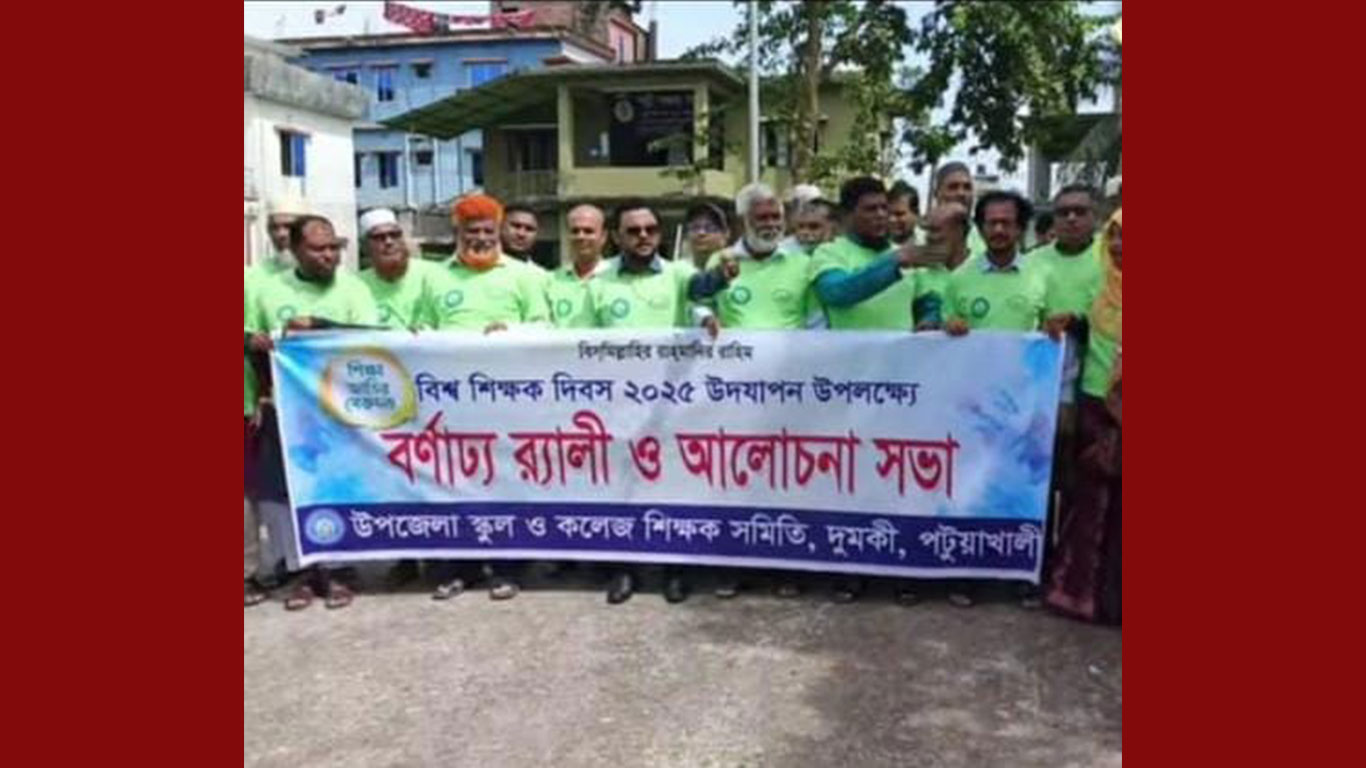 পটুয়াখালী জেলার দুমকী উপজেলায়,বিশ্ব শিক্ষক দিবস উপলক্ষে বর্ণাঢ্য র্যালি ও আলোচনা সভা অনুষ্ঠিত হয়। এ বছর দিবসটির প্রতিপাদ্য ‘শিক্ষকতা পেশা: মিলিত প্রচেষ্টার দীপ্তি’ এই স্লোগানকে সামনে রেখে রবিবার সকাল ১০টায় দুমকি উপজেলা প্রশাসনিক ভবনের নিচতলায় সম্মেলন কক্ষে দুমকি উপজেলা প্রশাসন, আয়োজনে আলোচনা সভা অনুষ্ঠিত হয়।