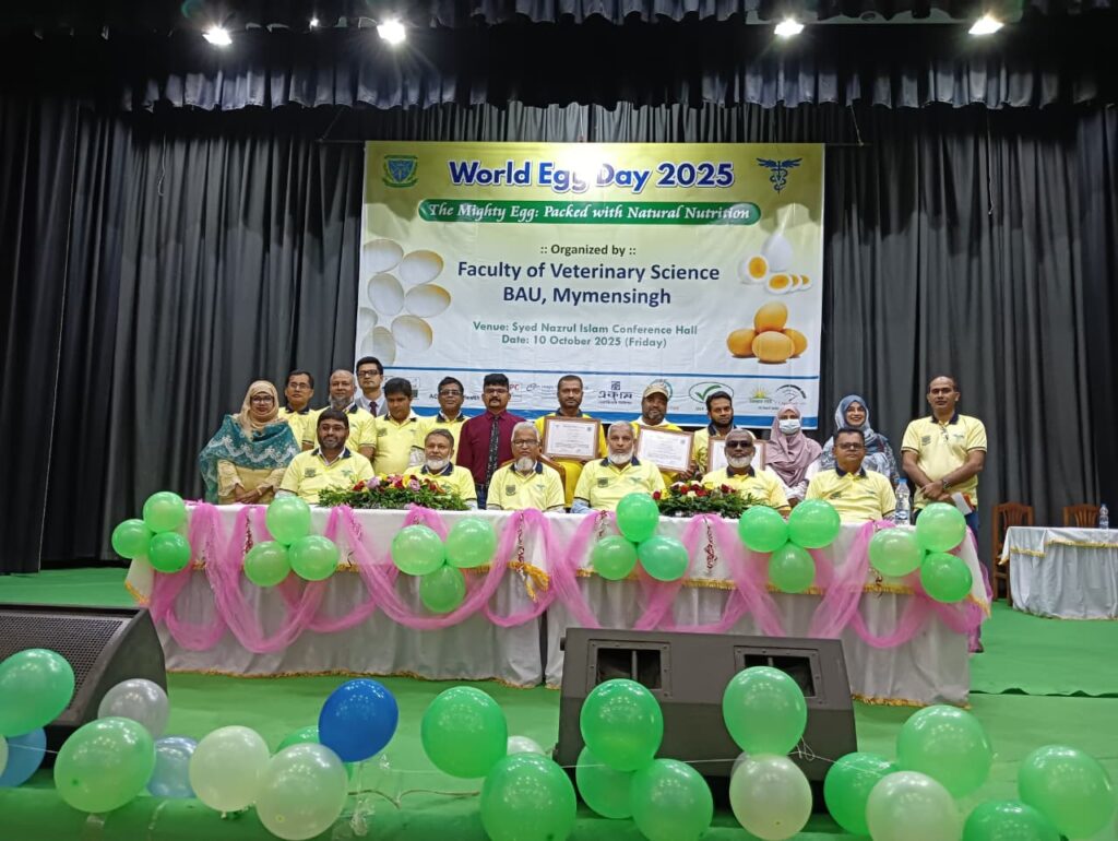 বাংলাদেশ কৃষি বিশ্ববিদ্যালয়ের ভেটেরিনারি অনুষদের উদ্যোগে উৎসবমুখর পরিবেশে পালিত হয়েছে ‘বিশ্ব ডিম দিবস-২০২৫’। শুক্রবার (১০ অক্টোবর) সকাল ১০টায় ভেটেরিনারি অনুষদ ভবন-২ এর সামনে বেলুন উড়ানোর মাধ্যমে অনুষ্ঠানের উদ্বোধন করেন ভেটেরিনারি অনুষদের ডিন অধ্যাপক ড. মো. বাহানুর রহমান।