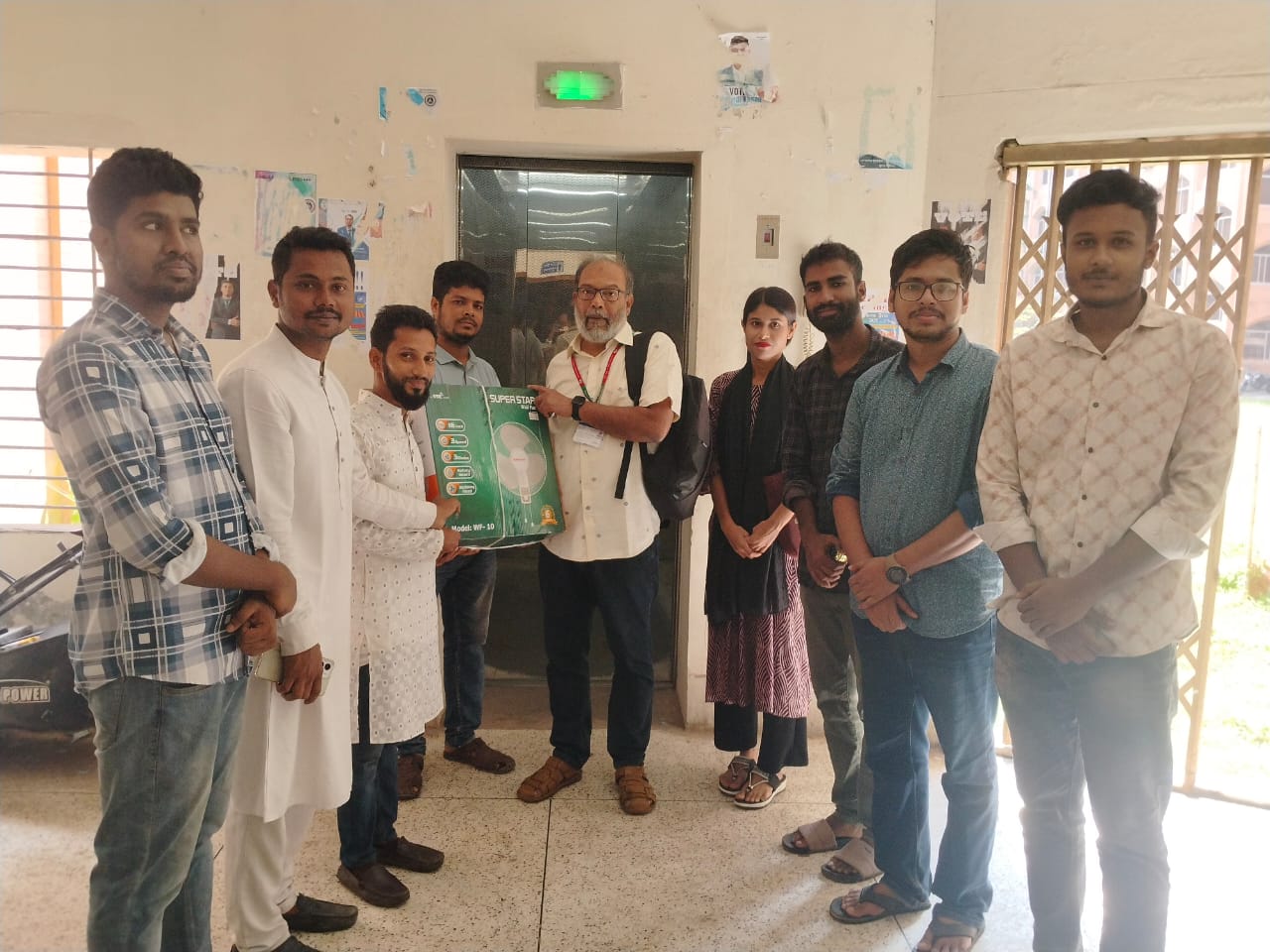 বরিশাল বিশ্ববিদ্যালয় (ববি) প্রশাসনিক ভবনের শিক্ষার্থীদের লিফটে ব্যবহারের জন্য একটি ফ্যান হস্তান্তর করেছে বরিশাল বিশ্ববিদ্যালয় জাতীয়তাবাদী ছাত্রদল।