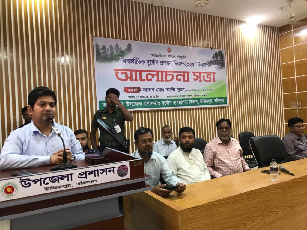 উপজেলা নির্বাহী অফিসার মোঃ আলী সুজা সভাপতিত্বে আলোচনা সভা অনুষ্ঠিত হয়। অনুষ্ঠানটি আয়োজন করে উপজেলা প্রশাসন ও দুর্যোগ ব্যবস্থাপনা বিভাগ, উজিরপুর। সঞ্চালনায় ছিলেন উপজেলা পরিসংখ্যান কর্মকর্তা নুর হোসেন।