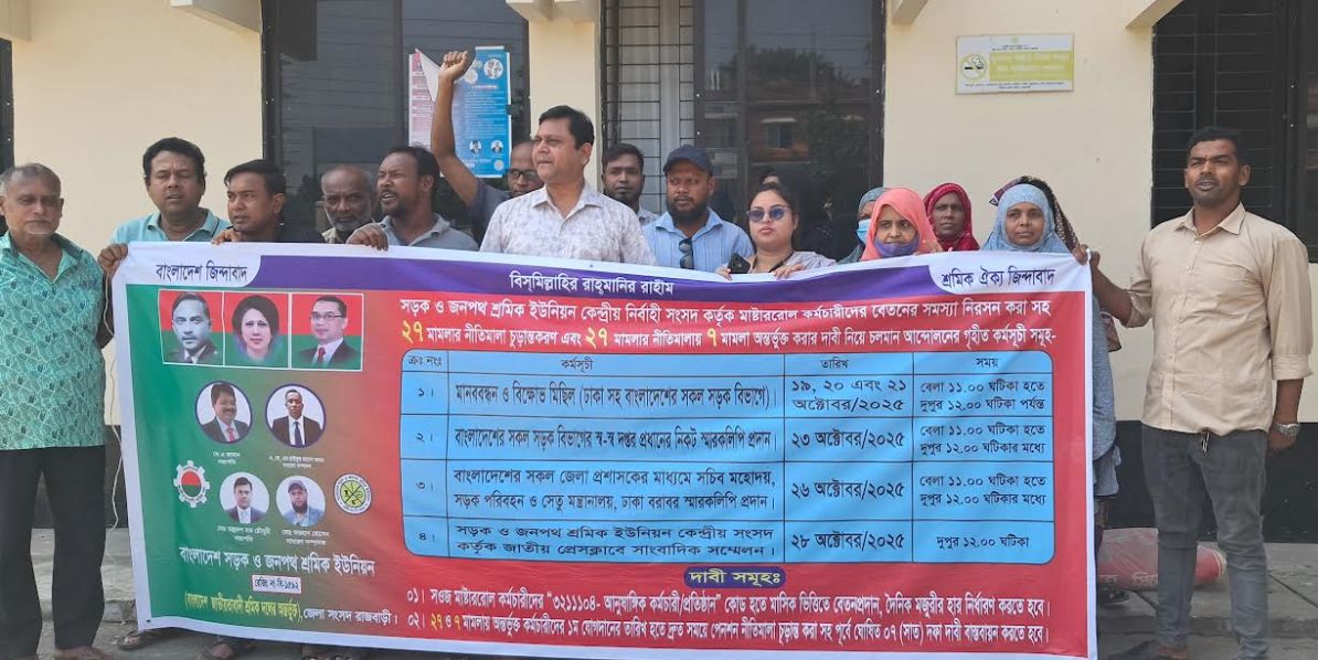 সভাপতি মোঃ মুনজুরুল হক চৌধুরী পিন্টু বলেন, আমরা বহুবার দাবি জানালেও এখনো স্থায়ী কোনো সমাধান পাইনি। তাই বাধ্য হয়েই আন্দোলনের কর্মসূচি নিতে হয়েছে। সরকারের কাছে আমাদের প্রত্যাশা দীর্ঘদিন ধরে অবহেলিত মাষ্টাররোল শ্রমিকদের জীবন-জীবিকা রক্ষায় দ্রুত ব্যবস্থা নেয়া হোক।
