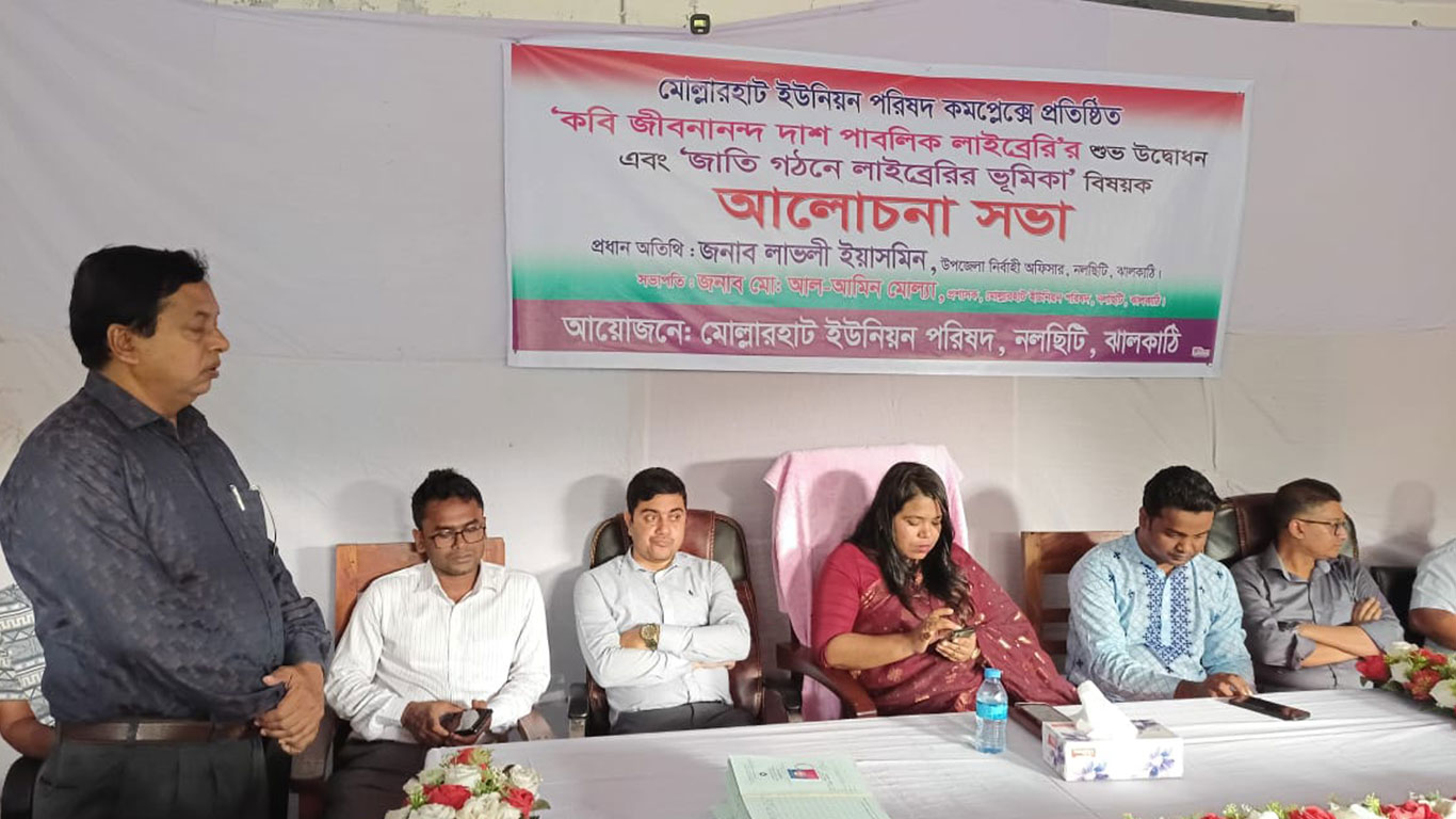 শিক্ষা প্রতিষ্ঠানের শিক্ষার্থী এবং চাকরিপ্রার্থীদের উন্নত পরিবেশে পড়াশোনার সুযোগ এবং এলাকাবাসীর জ্ঞান চর্চা কেন্দ্র হিসেবে ঝালকাঠি জেলার নলছিটি উপজেলার মোল্লারহাট ইউনিয়ন পরিষদ কমপ্লেক্সে প্রতিষ্ঠা করা হয়েছে পাবলিক লাইব্রেরি।