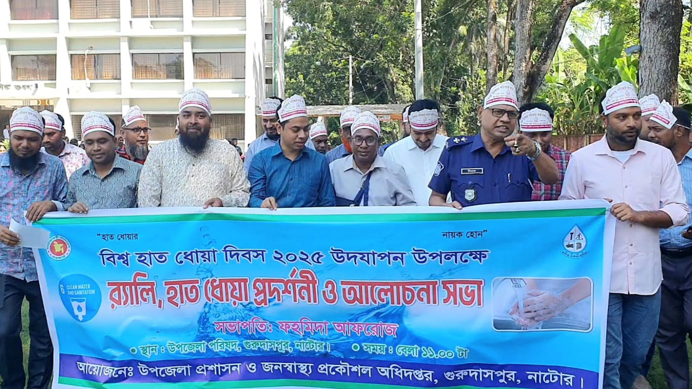 প্রতিপাদ্যকে সামনে রেখে বর্ণাঢ্য র‍্যালি ও আলোচনা সভার মধ্যে দিয়ে নাটোরের গুরুদাসপুরে বিশ্ব হাত ধোঁয়া দিবস পালিত হয়েছে। গুরুদাসপুর উপজেলা প্রশাসন ও জনস্বাস্থ্য প্রকৌশল অধিদপ্তরের আয়োজনে দিবসটি পালন করা হয়।