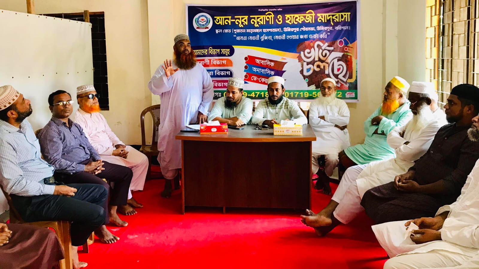 বরিশাল জেলার উজিরপুর পৌরসভার প্রানকেন্দ্রে আন নূর নূরানী মাদ্রাসায় হাফেজী শাখা খোলার জন্য স্থানীয় গণ্যমান্য ব্যাক্তি ও অভিভাবকদের নিয়ে মতবিনিময় সভা অনুষ্ঠিত হয়েছে।