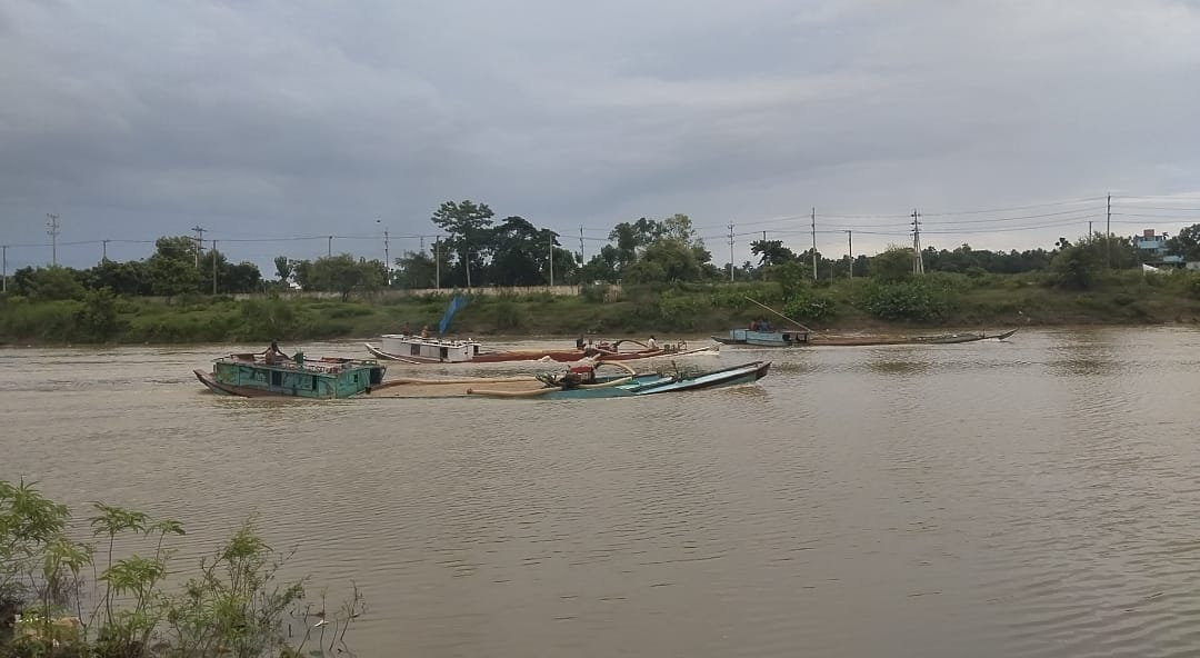 মনু নদীতে অবৈধ বালু উত্তোলন: অভিযান চালিয়ে নৌকা আটক