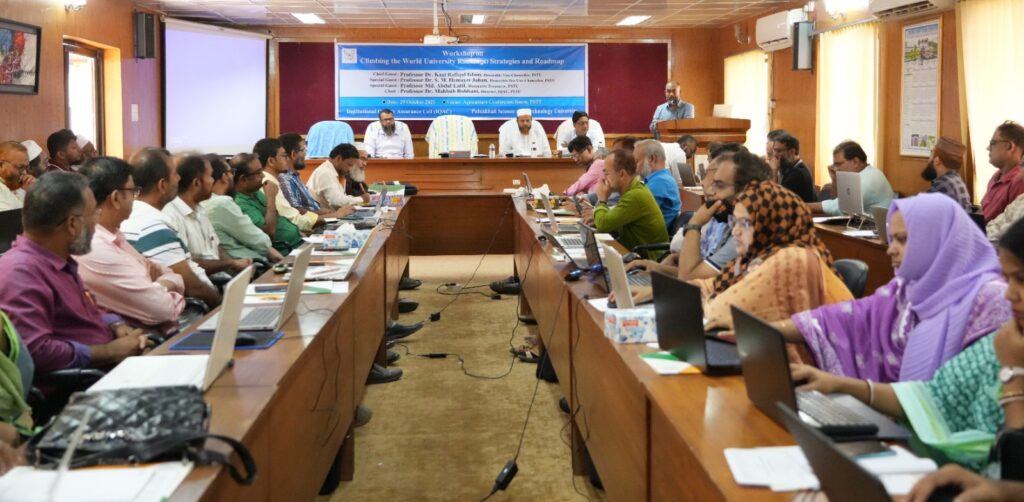পটুয়াখালী বিজ্ঞান ও প্রযুক্তি বিশ্ববিদ্যালয়ে (পবিপ্রবি) “Climbing the World University Rankings: Strategies and Roadmap” শীর্ষক দিনব্যাপী এক কর্মশালা অনুষ্ঠিত হয়েছে। বুধবার (২৯ অক্টোবর) সকাল ৯টায় বিশ্ববিদ্যালয়ের কৃষি অনুষদের সেমিনার কক্ষে এই কর্মশালার আয়োজন করে বিশ্ববিদ্যালয়ের Institutional Quality Assurance Cell (IQAC)।