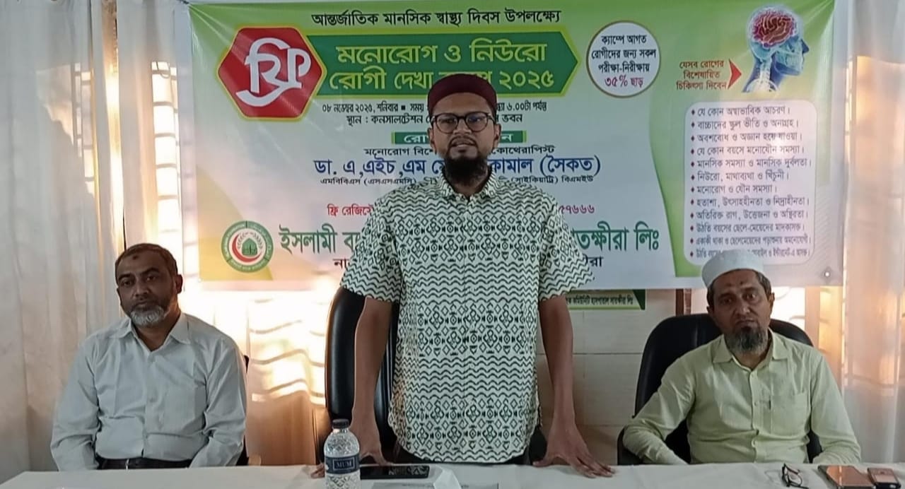 আন্তর্জাতিক মানসিক স্বাস্থ্য দিবস উপলক্ষে ইসলামী ব্যাংক কমিউনিটি হাসপাতাল সাতক্ষীরা লিমিটেড এর আয়োজন মনোরোগ ও নিউরো রোগী দেখা ফ্রি মেডিকেল ক্যাম্প অনুষ্ঠিত হয়েছে।