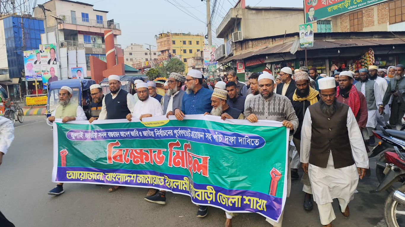 রাজবাড়ীতে বাংলাদেশ জামায়াতে ইসলামী জেলা শাখা কর্তৃক পাঁচ দফা দাবি আদায়ের লক্ষ্যে বিক্ষোভ মিছিল অনুষ্ঠিত হয়েছে।