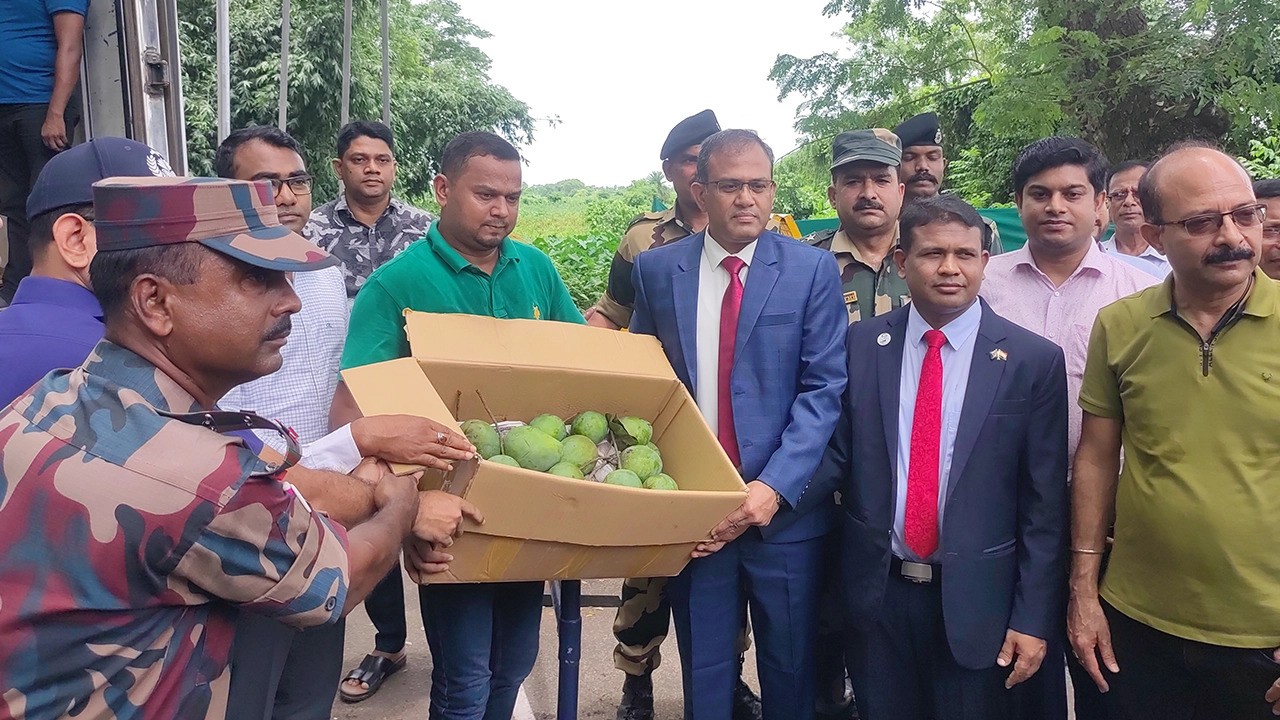 এ সময় সীমান্তের শূন্য রেখায় বাংলাদেশের পক্ষ থেকে উপহার সামগ্রী গ্রহণ করেন ত্রিপুরাস্থ বাংলাদেশের সহকারী হাইকমিশন অফিসের প্রথম সচিব রেজাউল হক চৌধুরী ও আল আমীন।