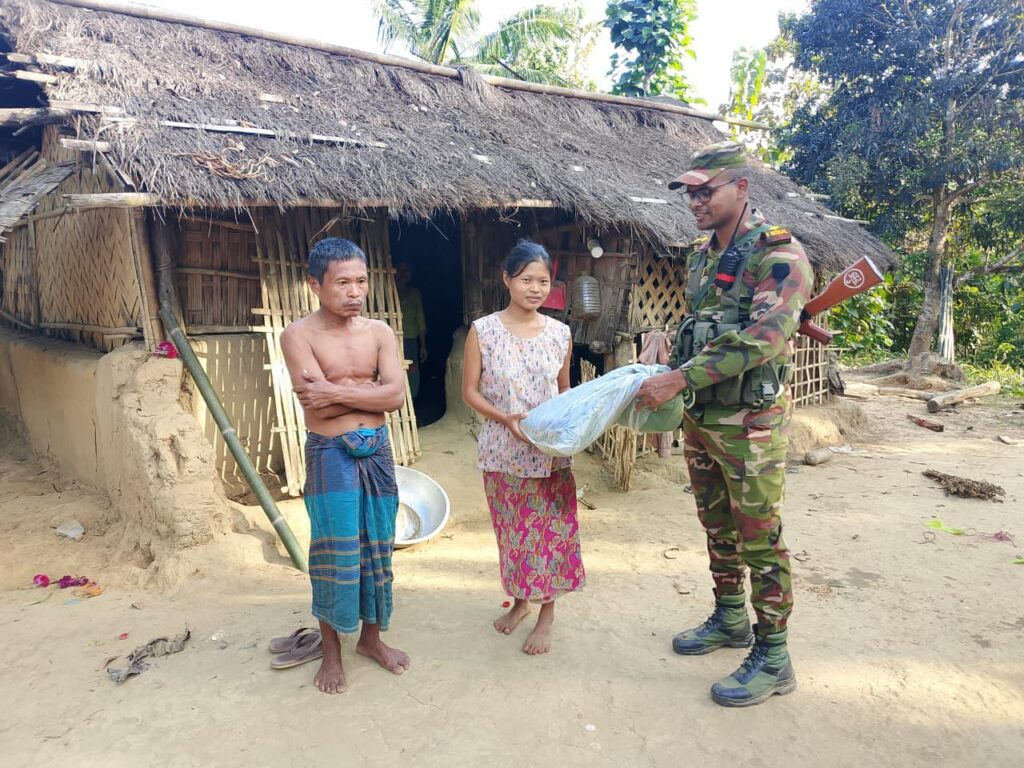 ক্যাপ্টেন আবু রায়হানের নেতৃত্বে সেনাবাহিনীর একটি চৌকস দল সকালে বিভিন্ন কারবারি পাড়ায় গিয়ে বাড়ি বাড়ি পৌঁছে অসহায়, গরীব ও শীতার্ত বৃদ্ধদের মাঝে শতাধিক কম্বল বিতরণ করেন। প্রত্যন্ত পাহাড়ি এলাকার শীতপ্রবণতা বেড়ে যাওয়ায় এই উদ্যোগ স্থানীয়দের মাঝে স্বস্তি এনে দিয়েছে।